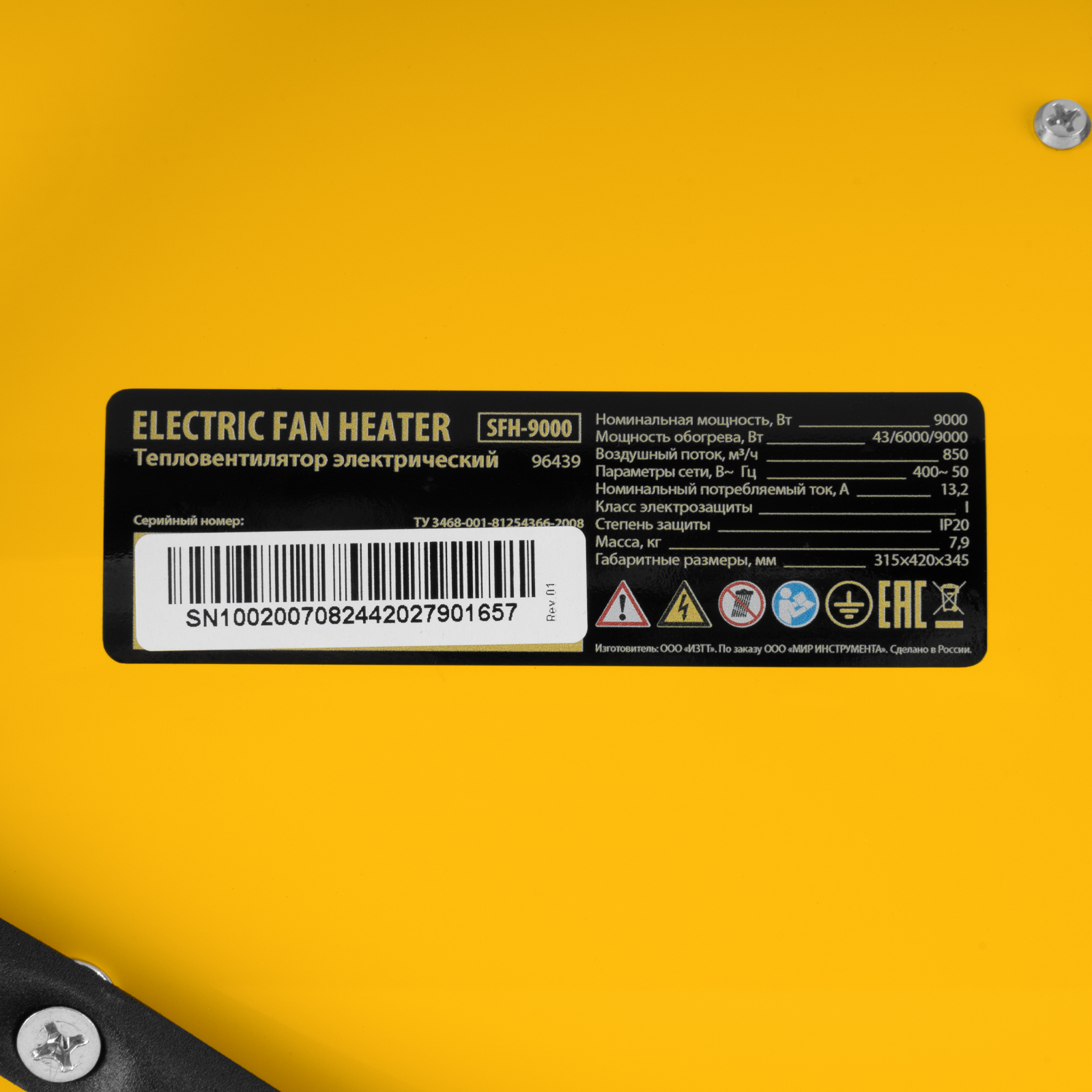 Тепловая пушка SFH-9000, 400 В, 850 м3/ч, вентилятор 3 режима, 6000/9000 Вт Denzel в Санкт-Петербурге