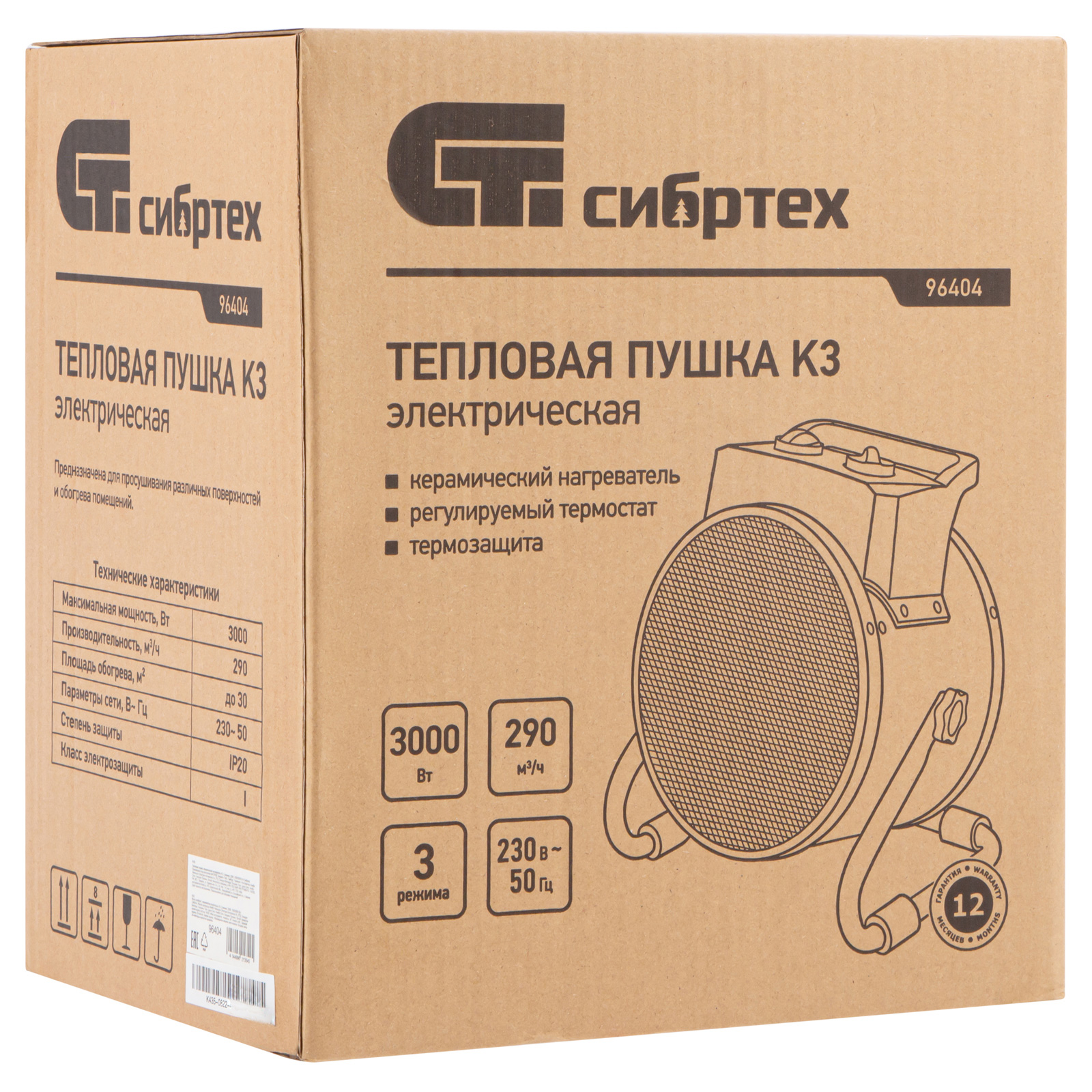 Тепловая пушка, керамический нагреватель K3, 3 режима, 230В, 1500/3000 Вт Сибртех в Санкт-Петербурге