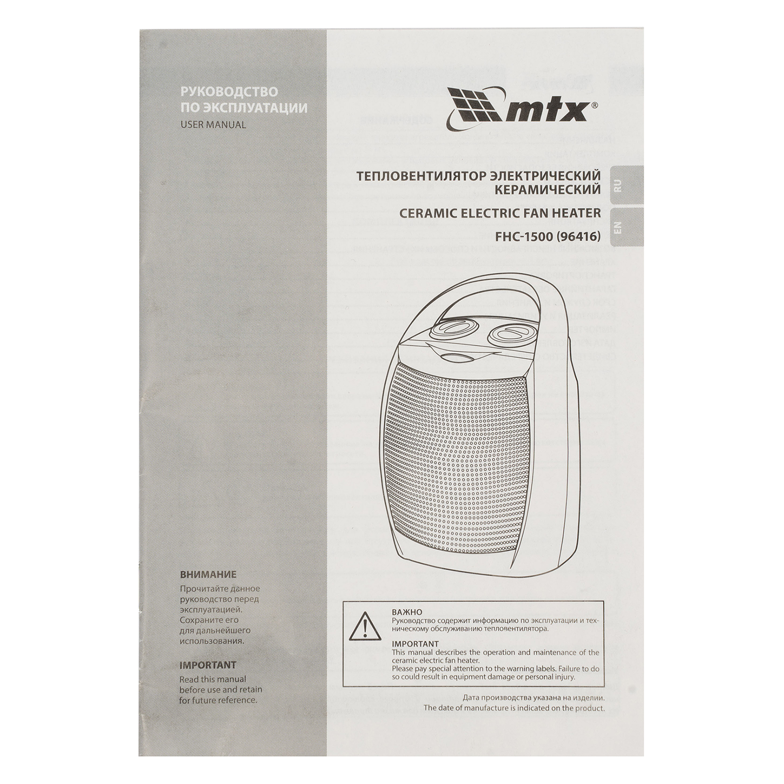 Тепловентилятор электр. керамический FHC-1500, 3 реж., вентилятор, нагрев 750/1500 Вт, MTX в Санкт-Петербурге