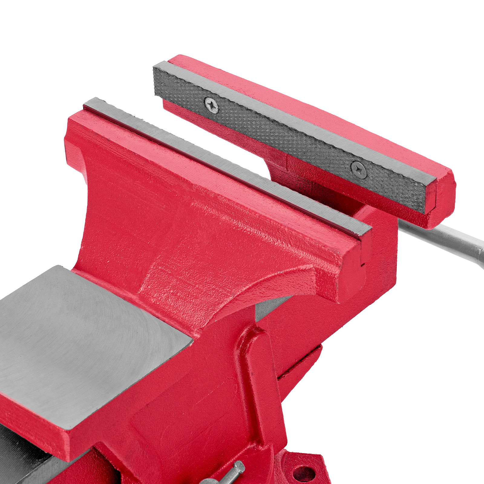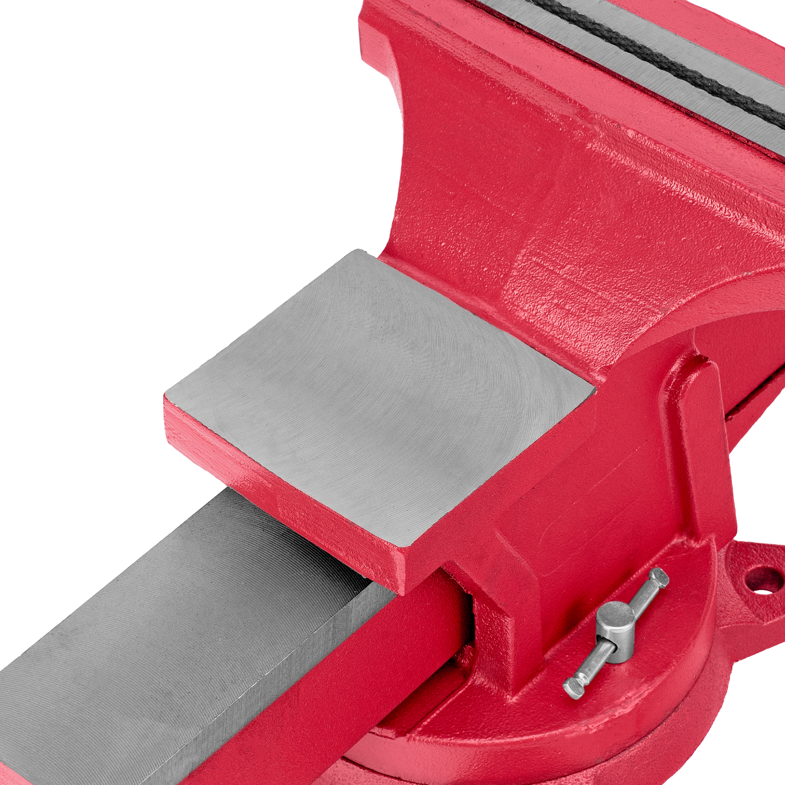 Поворотные слесарные тиски Matrix 18603 с наковальней и губками шириной 200 мм имеют рабочий ход 175 мм и предназначены для захвата и фиксации различных деталей. Поворотный механизм с прижимными винтами позволяет вращать тиски на 360° и фиксировать их в выбранном положении для удобной обработки заготовок с разных сторон. Инструмент используется для шлифовки, сверления и проведения других работ. Будет полезен в мастерской и гараже.