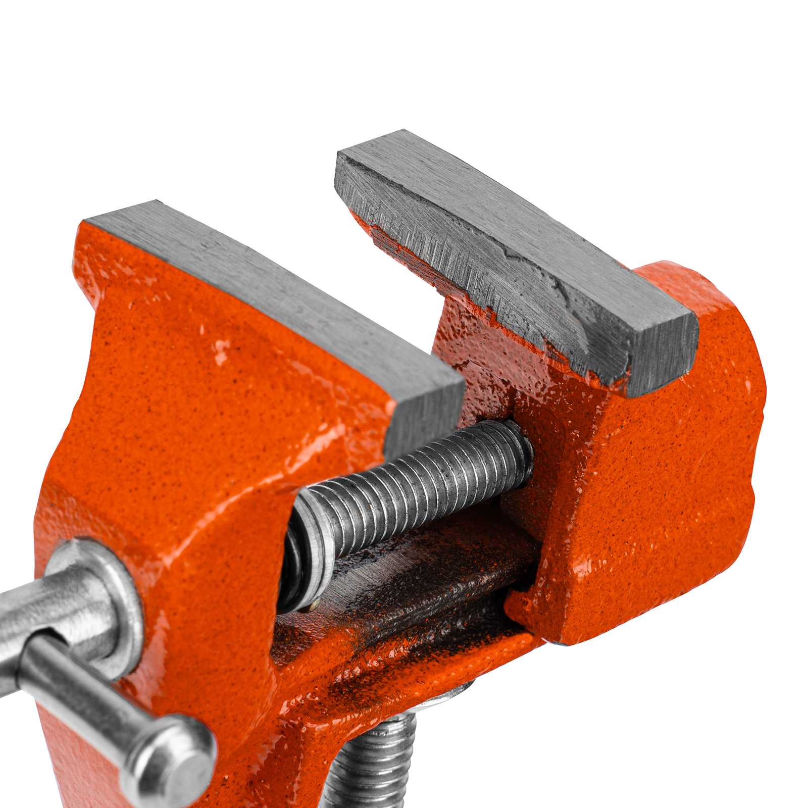 - Простое использование — винтовой зажимной механизм позволяет легко устанавливать и снимать тиски с рабочего стола.