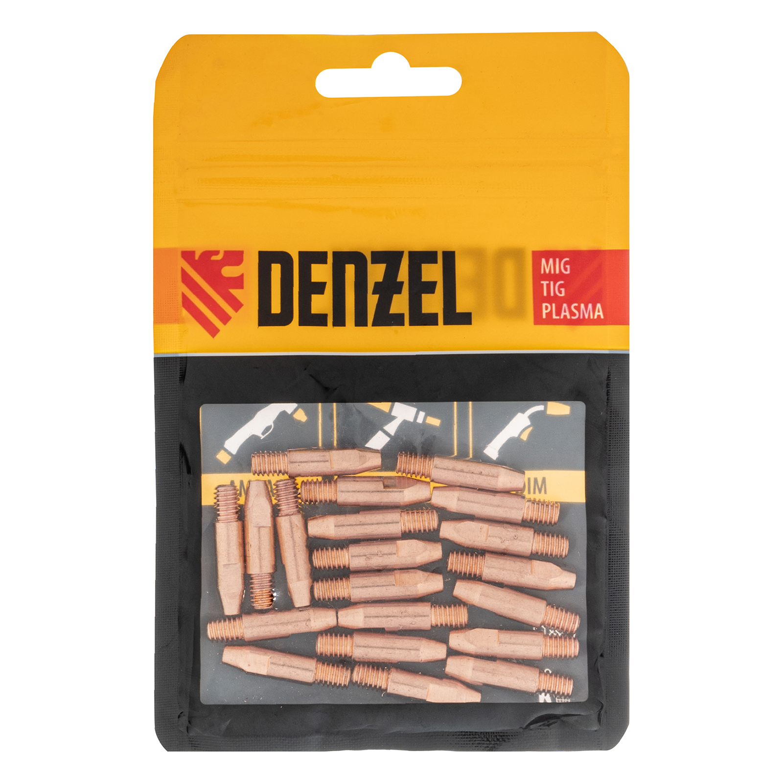 Токосъемный наконечник Denzel 93648 из меди E-CU, с резьбовым соединением M6х28, 20 шт. в упаковке, совместим со сварочными горелками типа 24 (в том числе с моделью Denzel 93642) и предназначен для подвода тока к проволоке диаметром 1,2 мм на выходе в область сварки. Используется для замены изношенной детали и позволяет быстро восстановить работоспособность горелки.