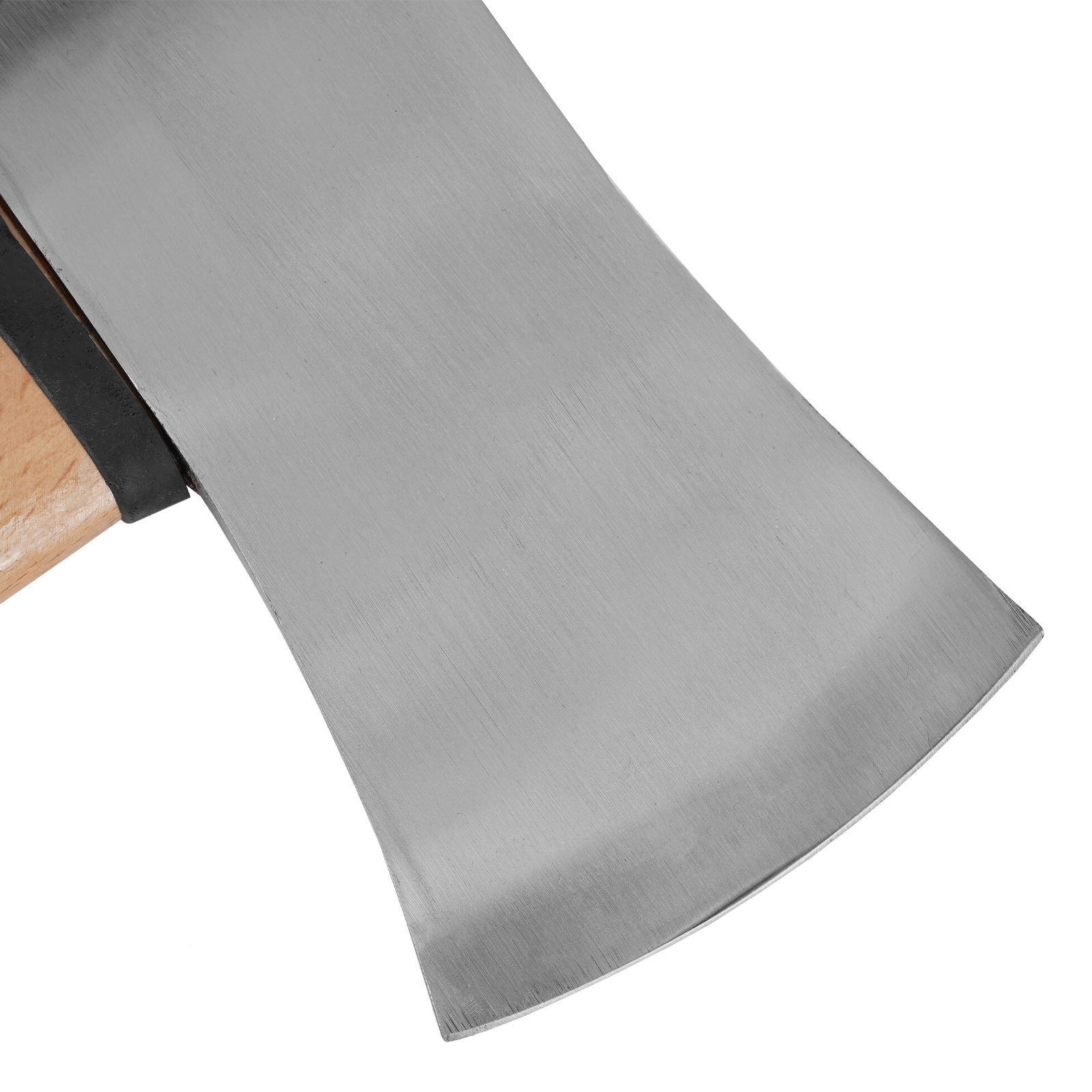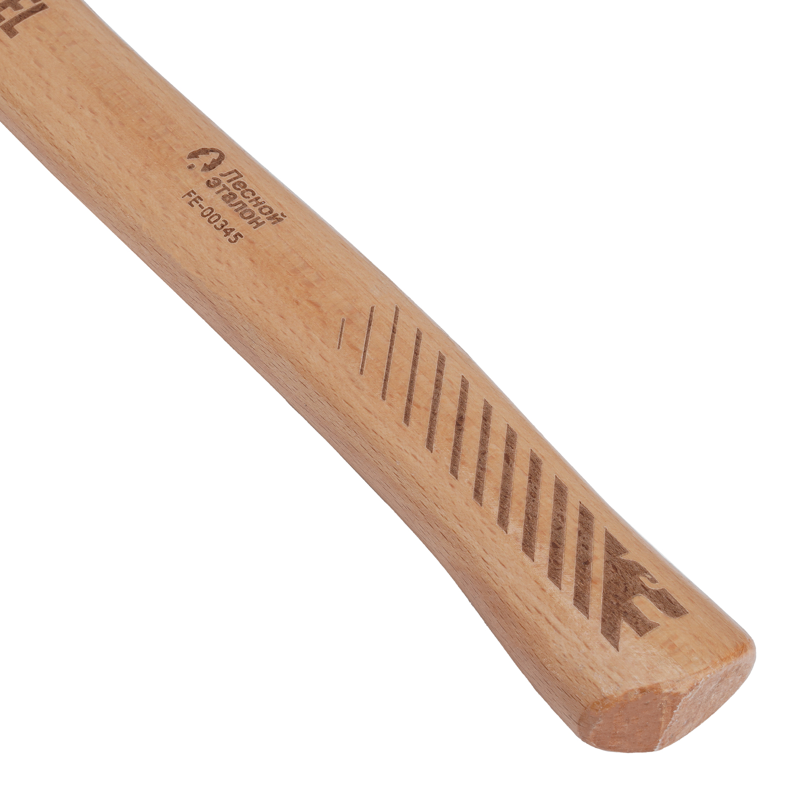 - Прочность — топорище изготовлено из твердой древесины бука и покрыто защитным лаком для предотвращения рассыхания и разбухания.