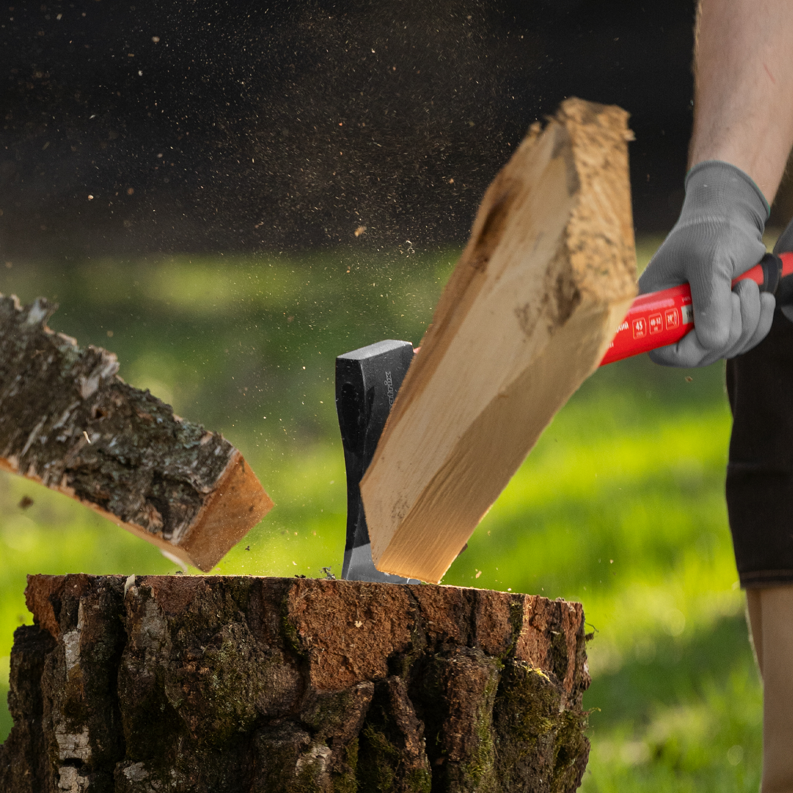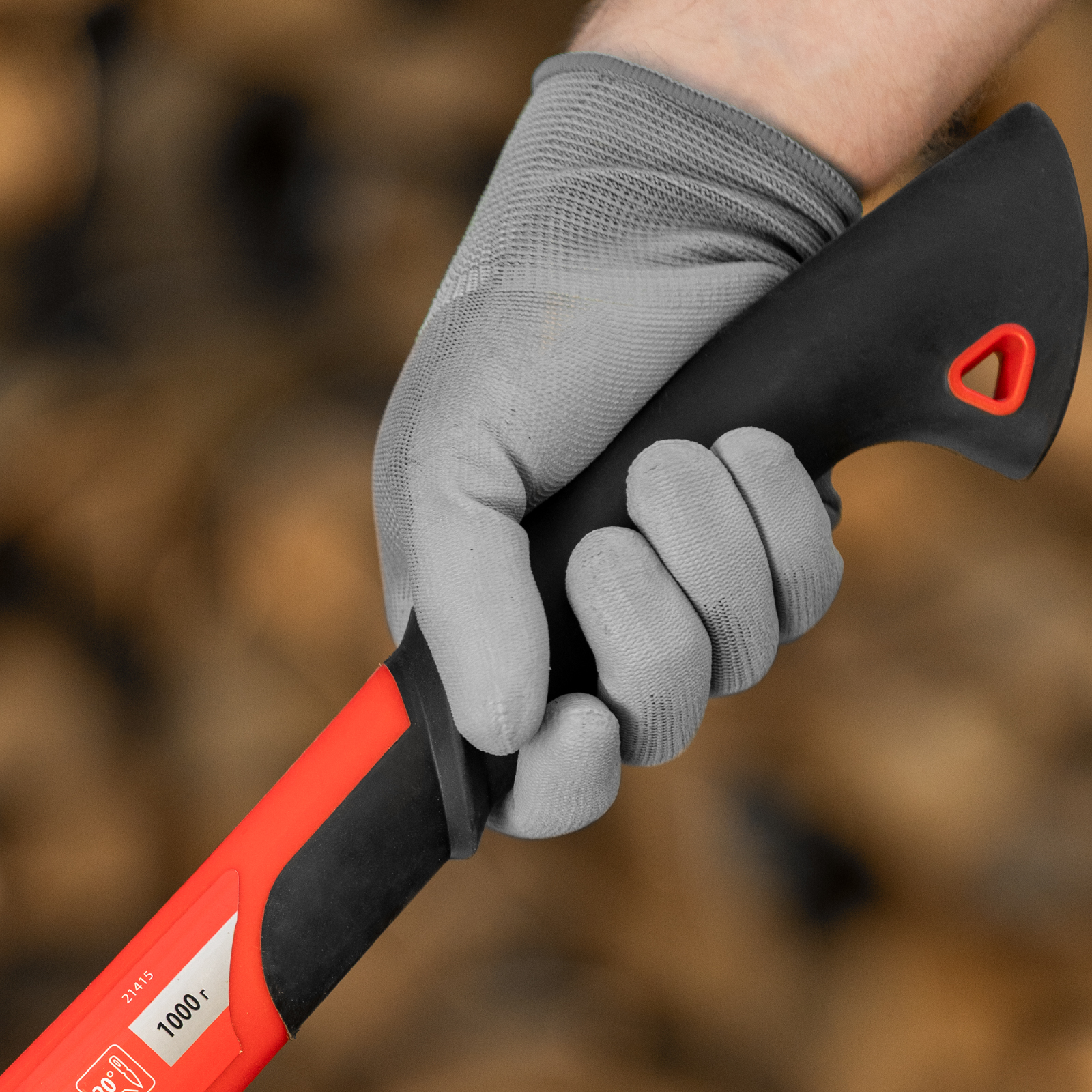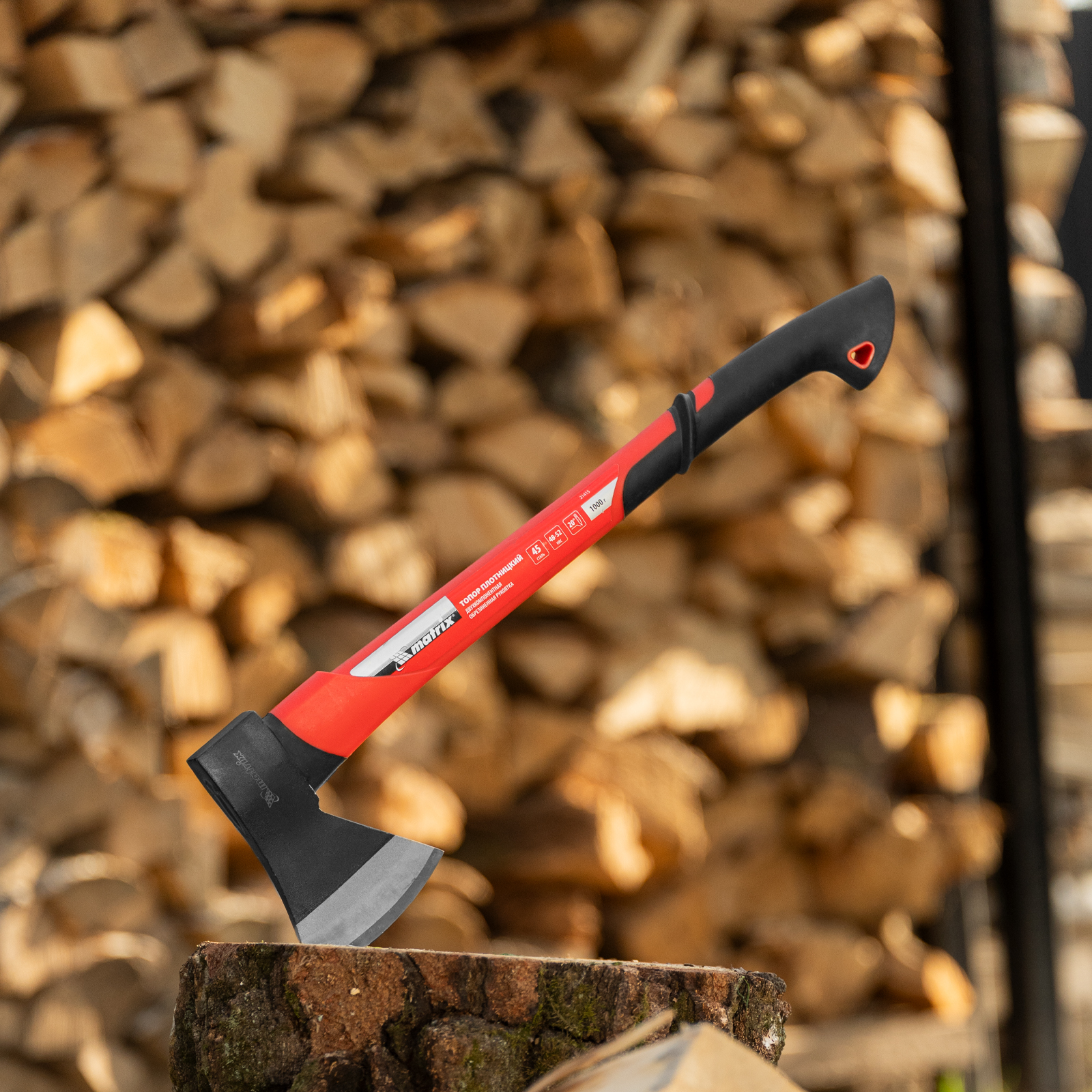 - Безопасное хранение и транспортировка — топор поставляется с защитной пластиковой накладкой на лезвии.