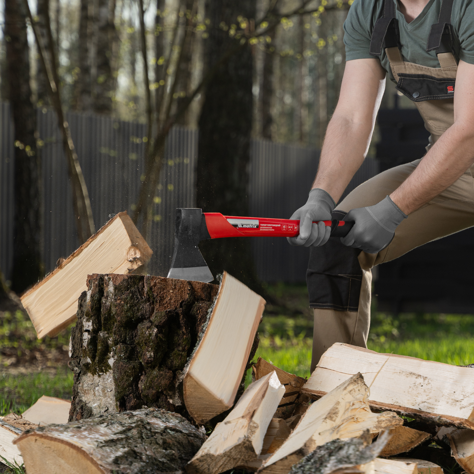 Топор Matrix 21415 длиной 610 мм, с рабочей частью весом 1000 г и эргономичной фибергласовой рукояткой, используется для колки дров, заострения колышков, вырубки кустов, рубки сучьев, а также выполнения других работ. Полукруглое лезвие упрощает работу. Удлиненная рукоятка позволяет наносить более сильные удары, что облегчает рубку больших дров, полен и валку небольших деревьев. Инструмент используется для решения бытовых задач.