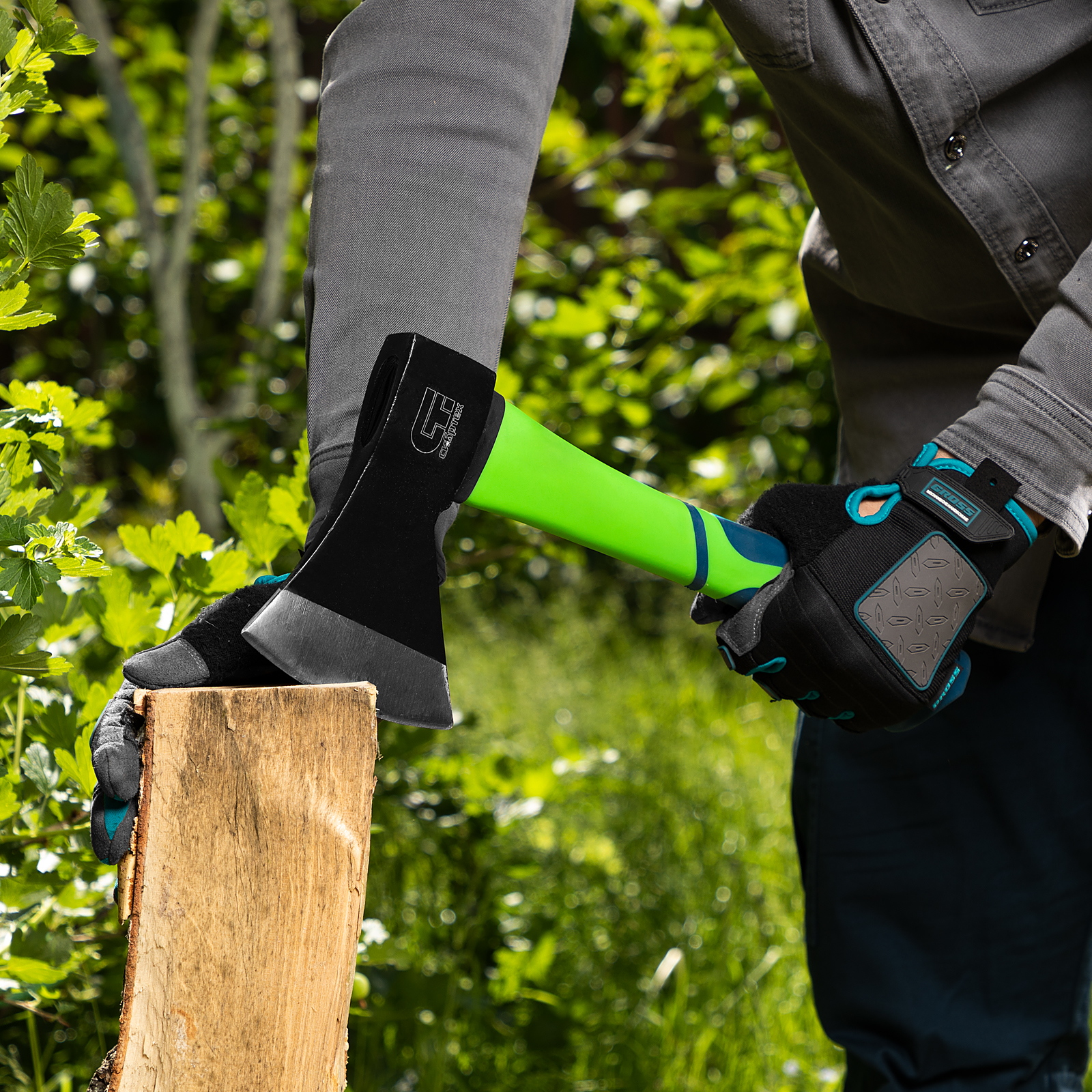- Комфортная работа — фибергласовое топорище гасит вибрации, что в сочетании с малым весом полотна 800 г позволяет уменьшить нагрузку на руки.