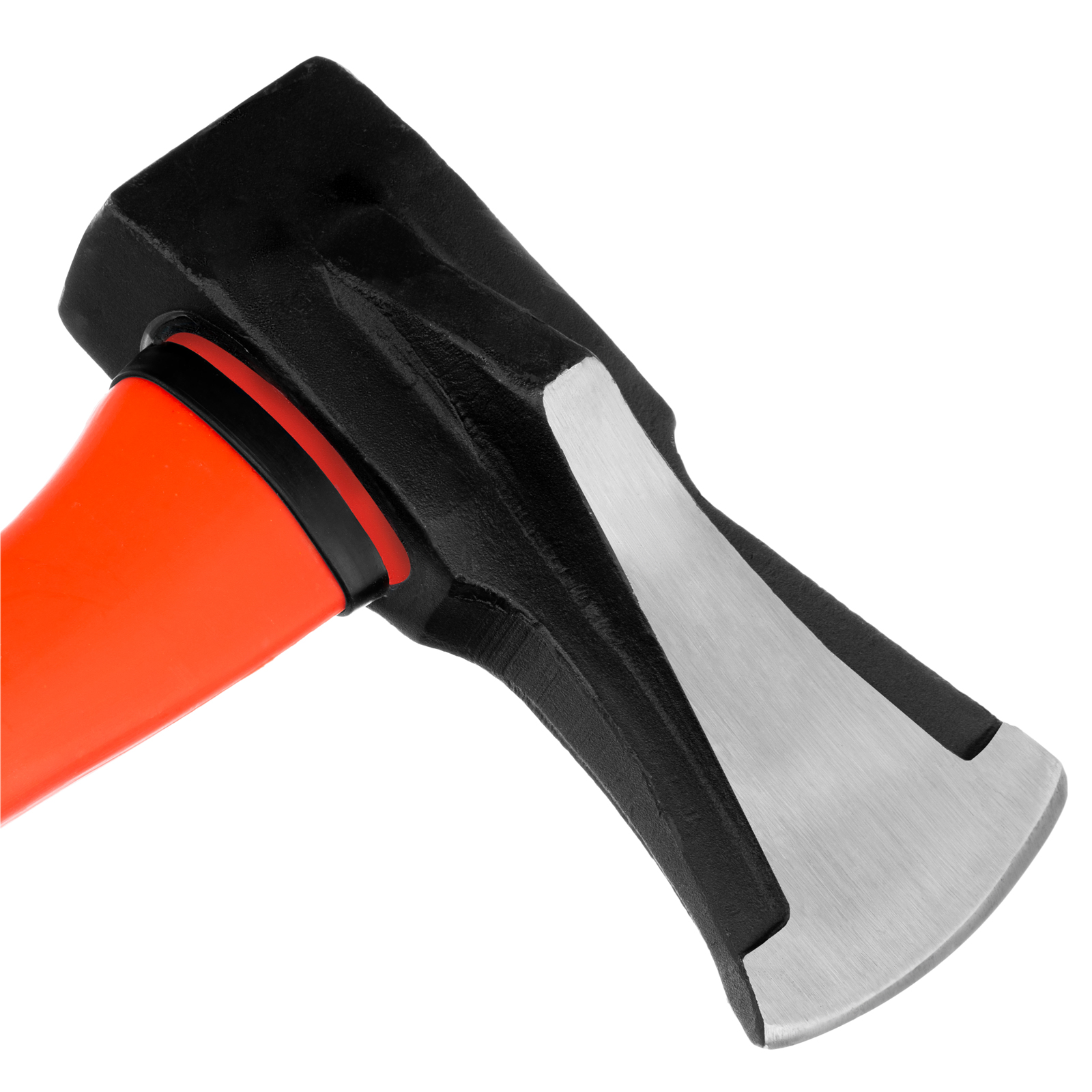 - Комфортная работа — фибергласовое топорище с резиновыми накладками поглощает колебания от ударов, снижая нагрузку на руки, а также обеспечивает надежный хват.