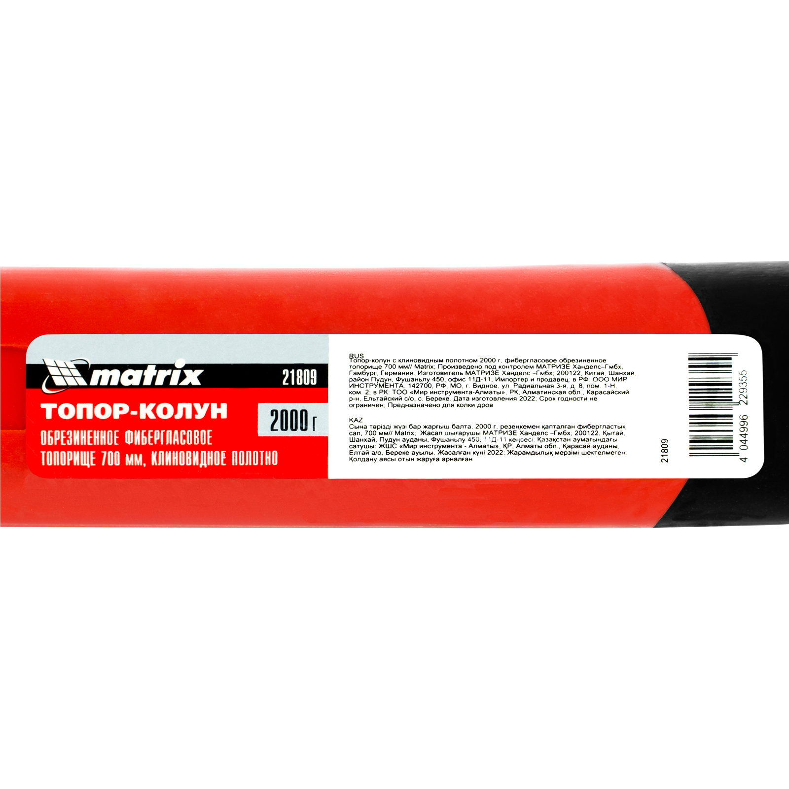 Топор-колун с клиновидным полотном 2000 г, фибергласовое обрезиненное топорище 700 мм Matrix