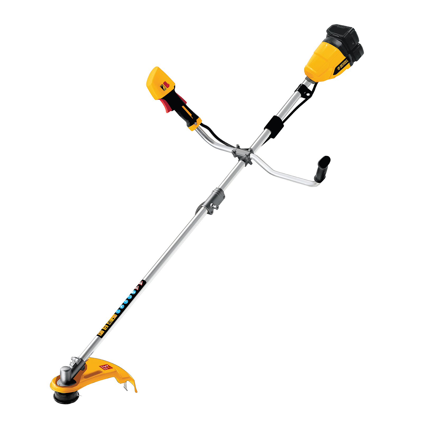 Аккумуляторный триммер Denzel GT-380 58721 поставляется с двумя аккумуляторами Li-Ion номинальным напряжением 40 В (2 x 20 В), катушкой и пильным диском. Используется для стрижки газонов, скашивания травы, сорняков и мелкого кустарника, а также для полного удаления растительности с участка земли. Мощный бесщеточный двигатель обеспечивает стабильную работу и не требует сложного обслуживания. Триммер не зависит от стационарного источника питания, что позволяет работать на любом расстоянии от дома. Предназначен для бытового использования.