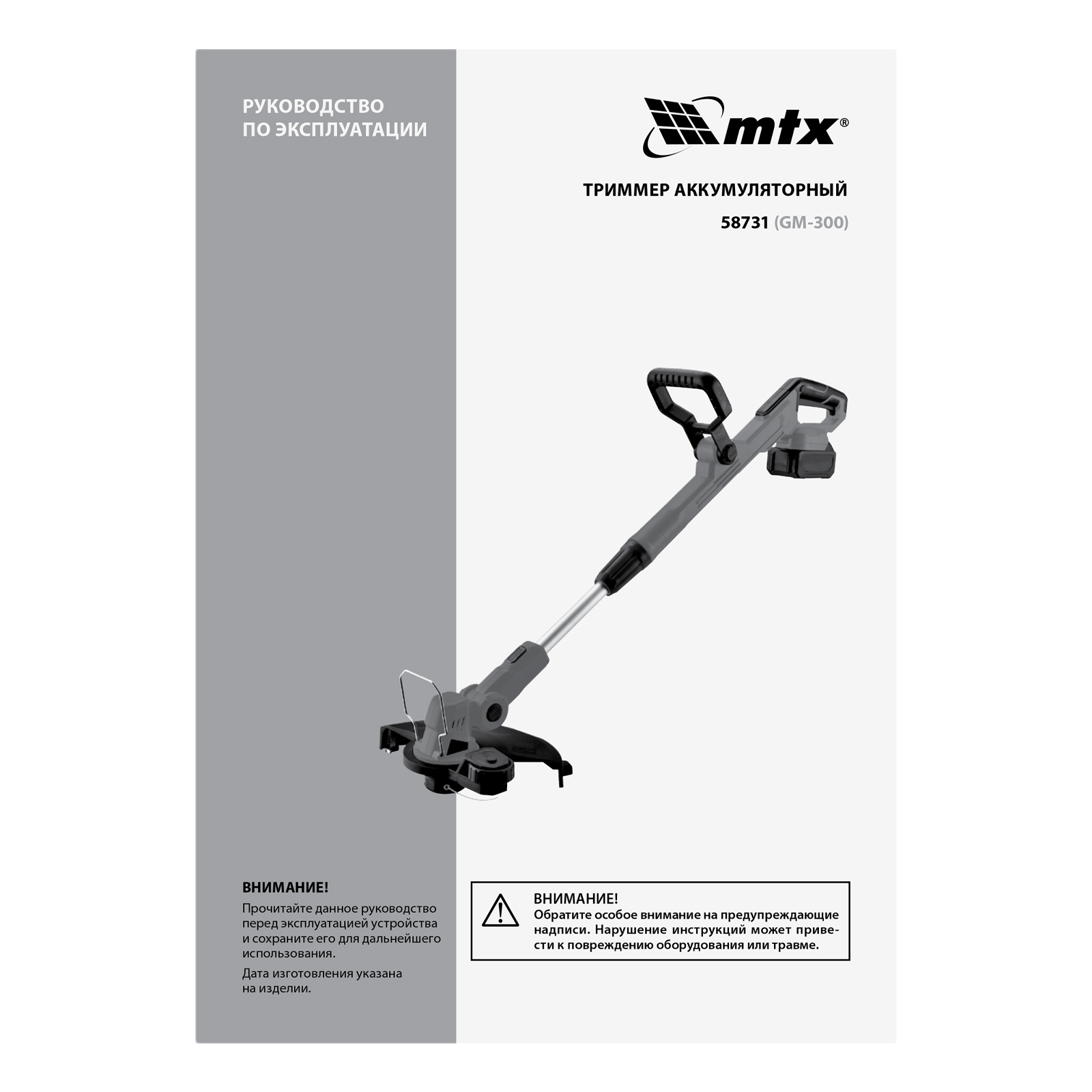 Триммер аккумуляторный GM-300, Li-Ion, 20 В MTX в Санкт-Петербурге
