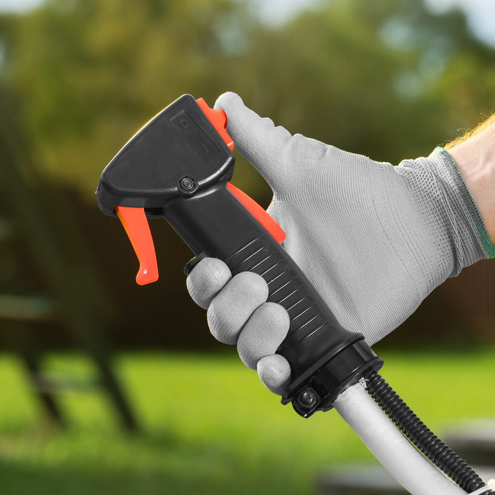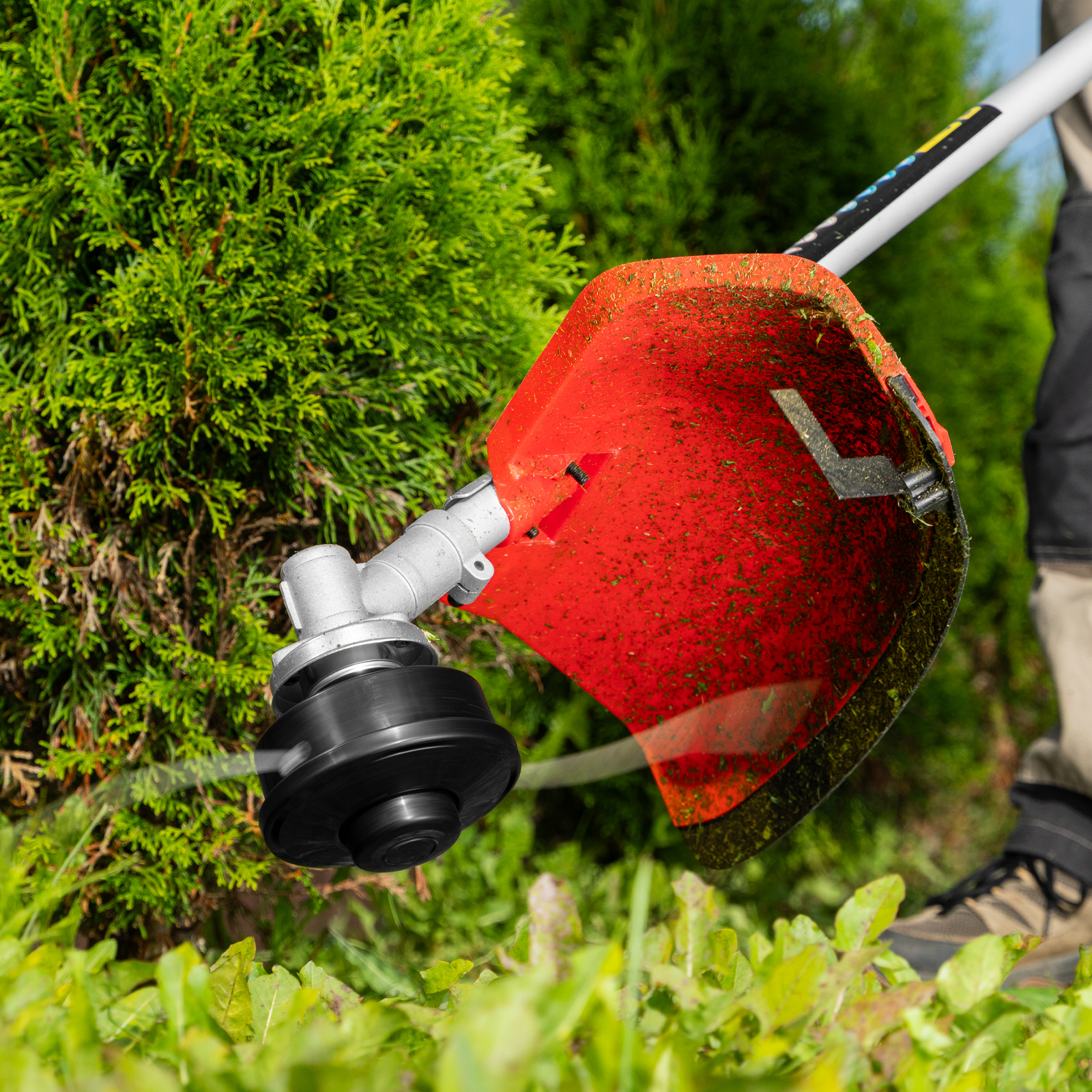 - Удобное хранение и транспортировка — благодаря разъемной штанге триммер не занимает много места.