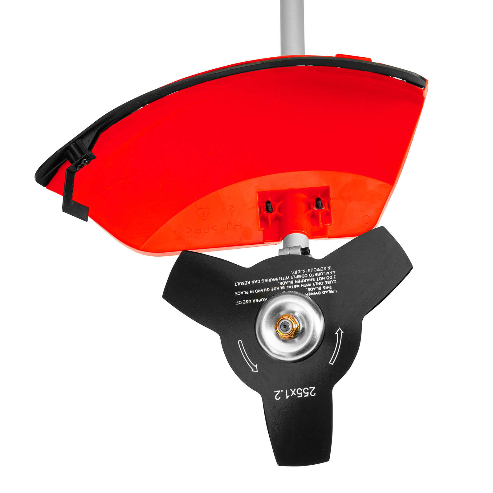 - Безопасность — производитель предусмотрел блокировку курка газа для предотвращения случайного запуска, защитный кожух препятствует вылету травы, веток, камней в сторону пользователя.