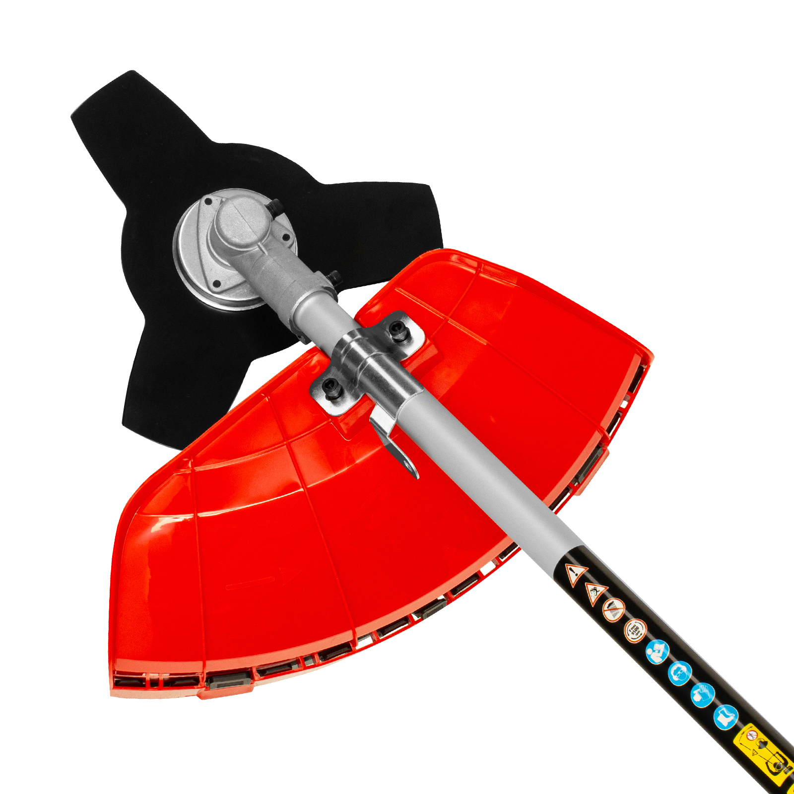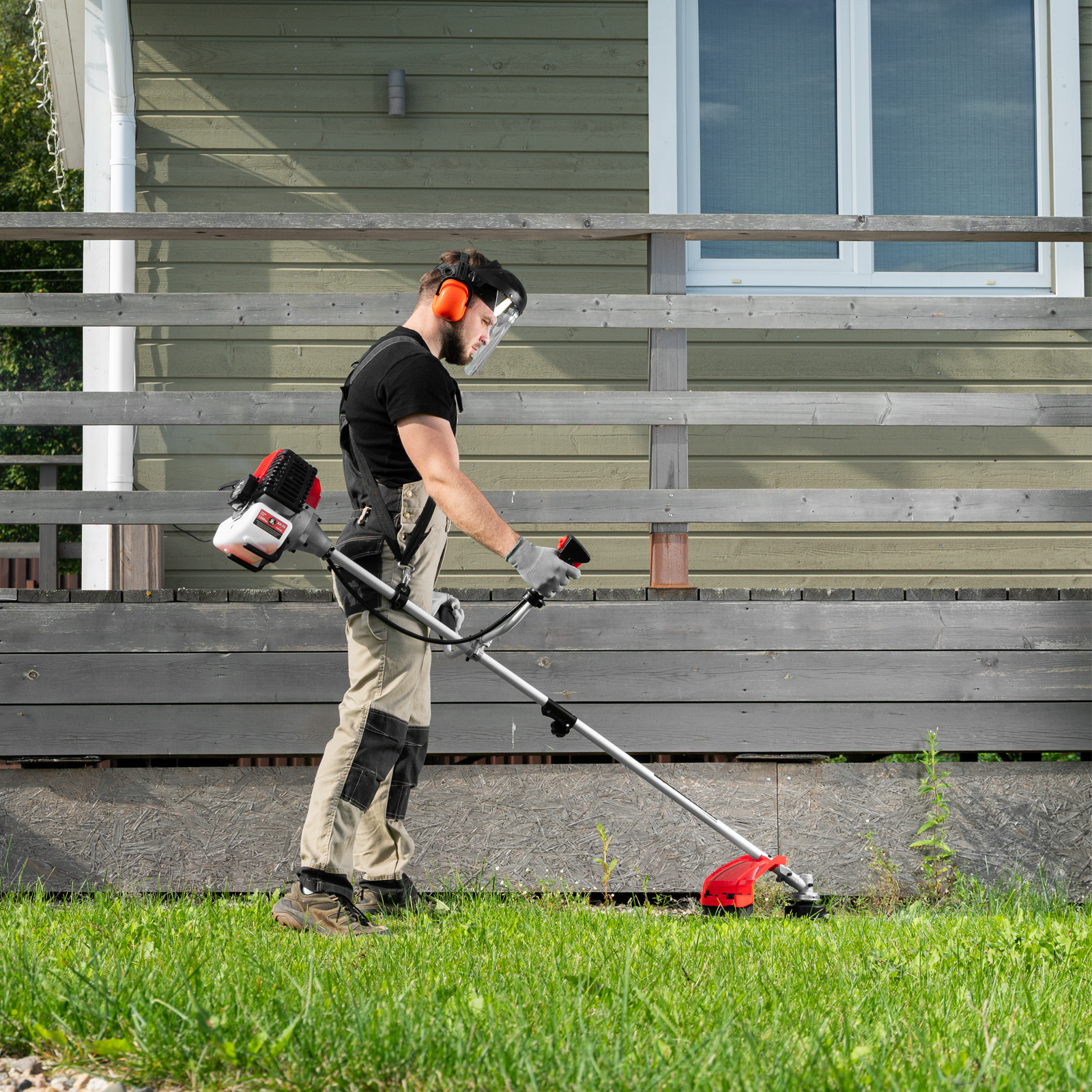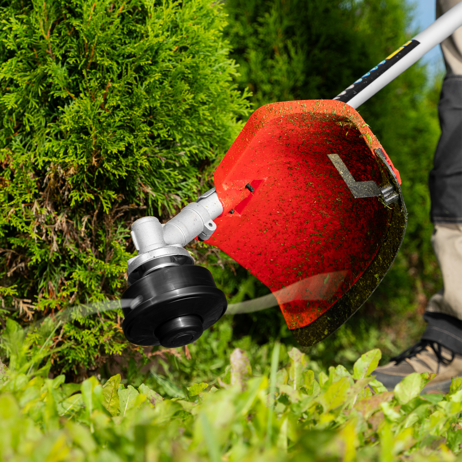 Бензиновый триммер MTX MT-52S 962365 с разъемной штангой и двигателем объемом 52 см3 предназначен для стрижки и скашивания травы, формирования границ газонов. Удобен для обработки участков вдоль стен и оград, вокруг деревьев. В качестве режущих элементов используются катушка с леской диаметром 3 мм и трехлопастный нож, благодаря которым триммером можно скашивать даже густую траву и сорняки с толстыми стеблями. Ширина скашивания леской составляет 420 мм, ножом — 255 мм, что позволяет эффективно справляться с работой. Триммер незаменим для ухода за дачным участком.