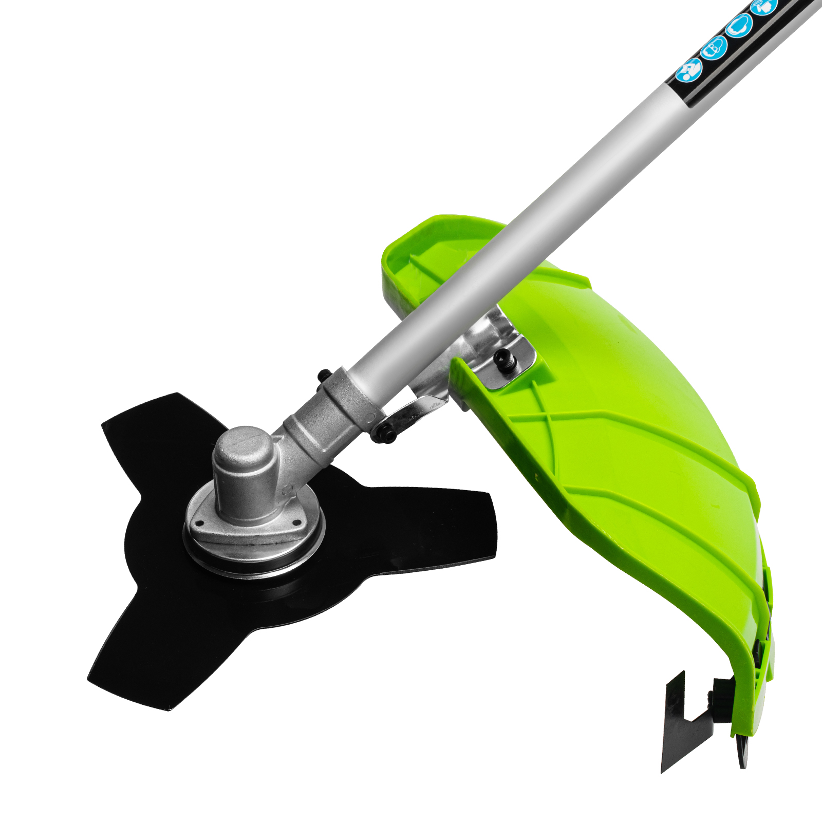- Полуавтоматическая подача лески — достаточно слегка ударить кнопкой катушки о землю, не останавливая двигатель.