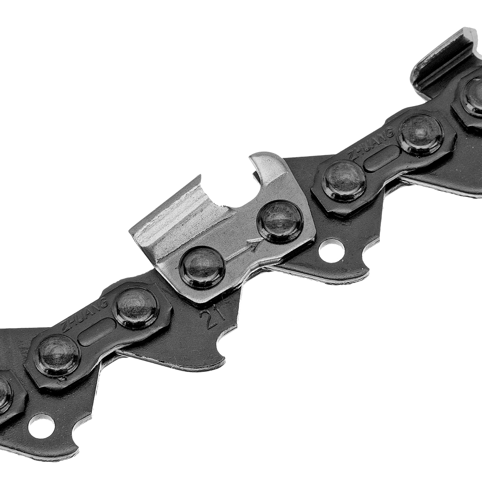 - Долговечность — благодаря чипперному, т.е. серпообразному типу режущего звена цепь легко затачивается и практически не загрязняется.