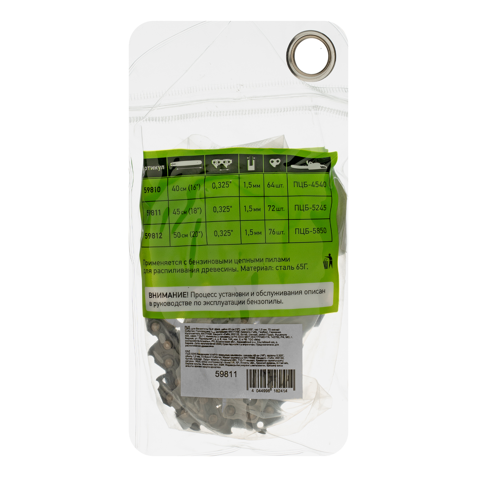 Цепь для бензопилы ПЦБ-5245, шина 45 см (18"), шаг 0.325", паз 1.5 мм, 72 звена Сибртех