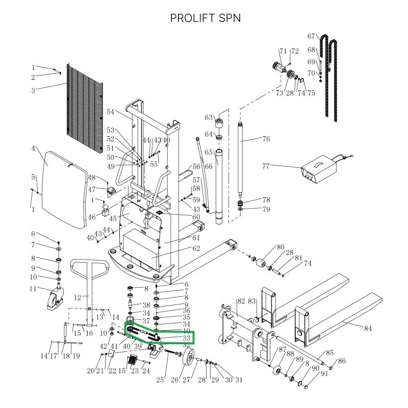 Цепь поворотного колеса в сборе с натяжителем для штабелеров SPN в Санкт-Петербурге