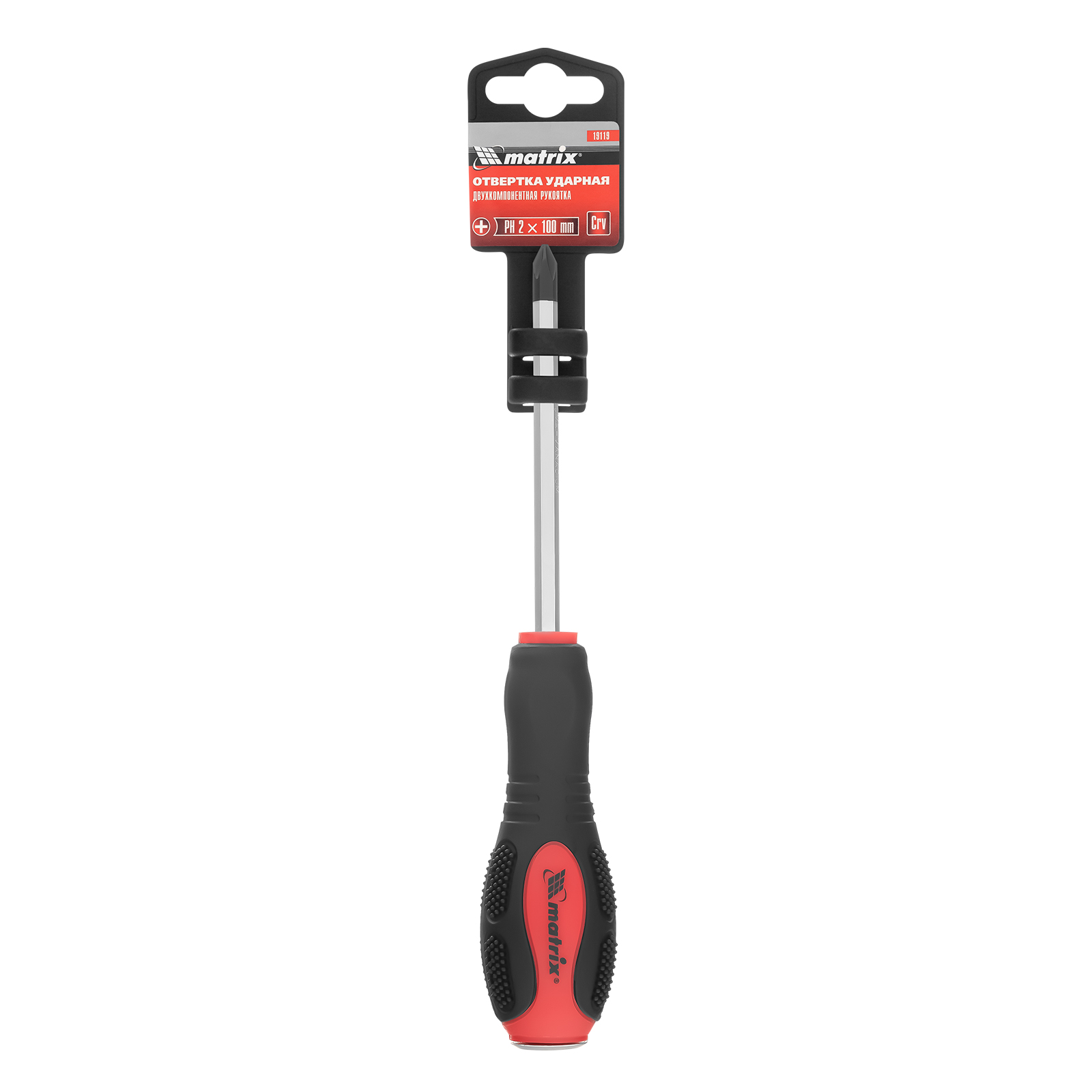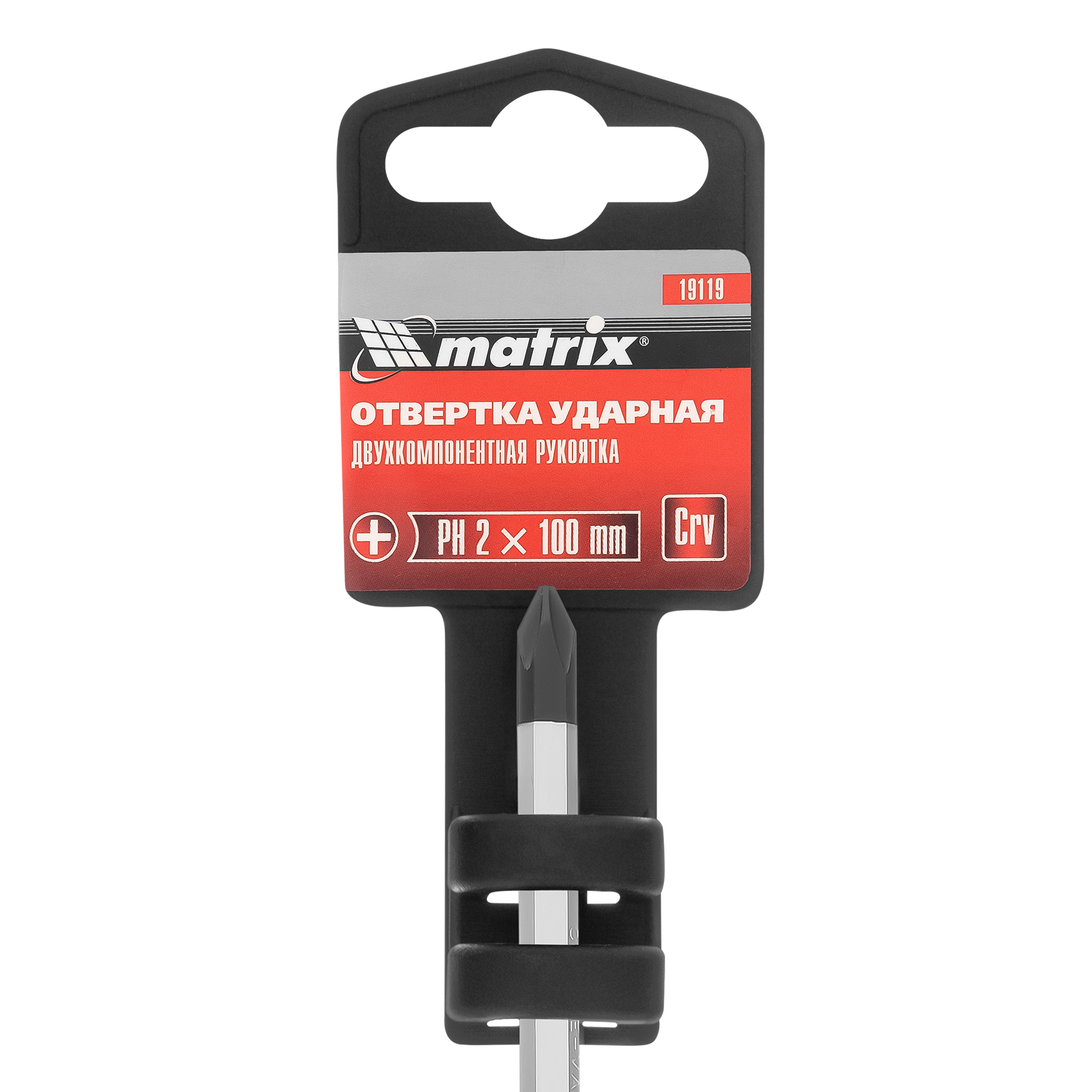 Ударная отвертка, PH2 x 100 мм, двухкомпонентная рукоятка, CrV Matrix в Санкт-Петербурге