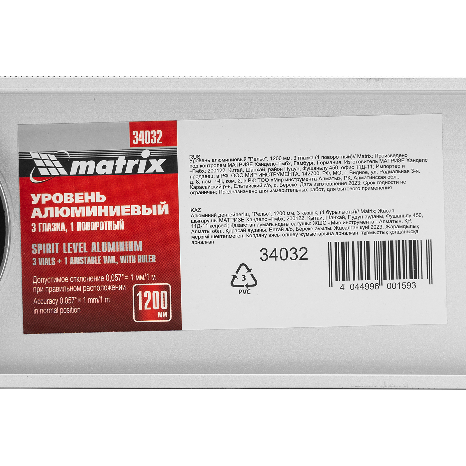 Уровень алюминиевый "Рельс", 1200 мм, 3 глазка (1 поворотный) Matrix в Санкт-Петербурге