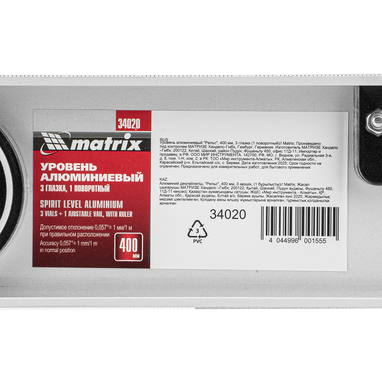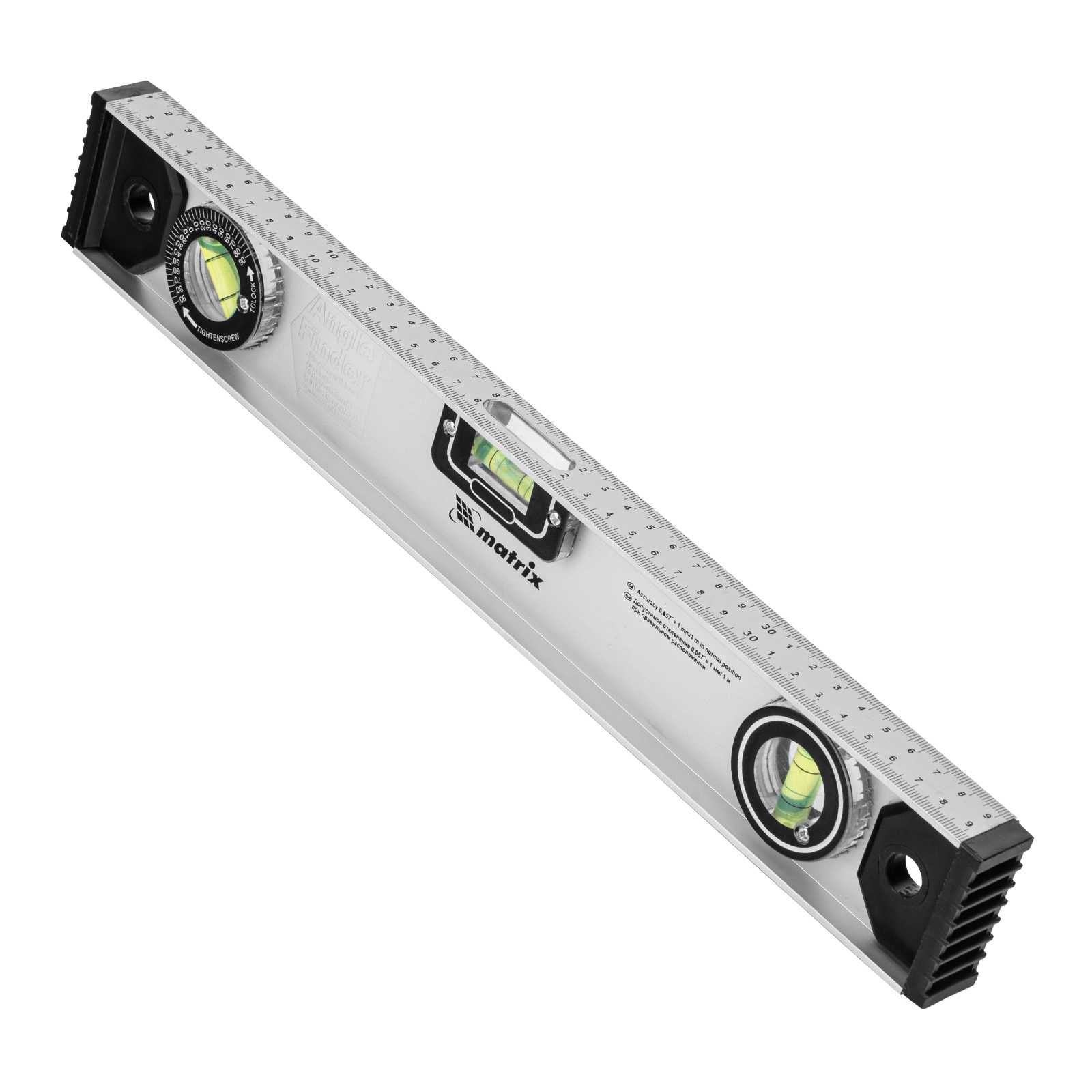 Уровень алюминиевый "Рельс", 400 мм, 3 глазка (1 поворотный) Matrix в Санкт-Петербурге