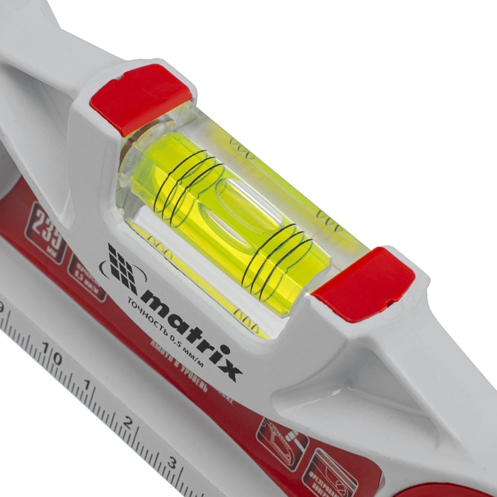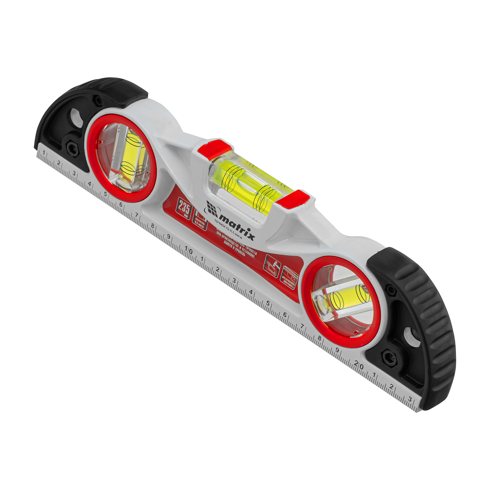 Уровень алюминиевый литой, фрезерованный, 3 глазка, две ударные площадки, 235 мм Matrix в Санкт-Петербурге