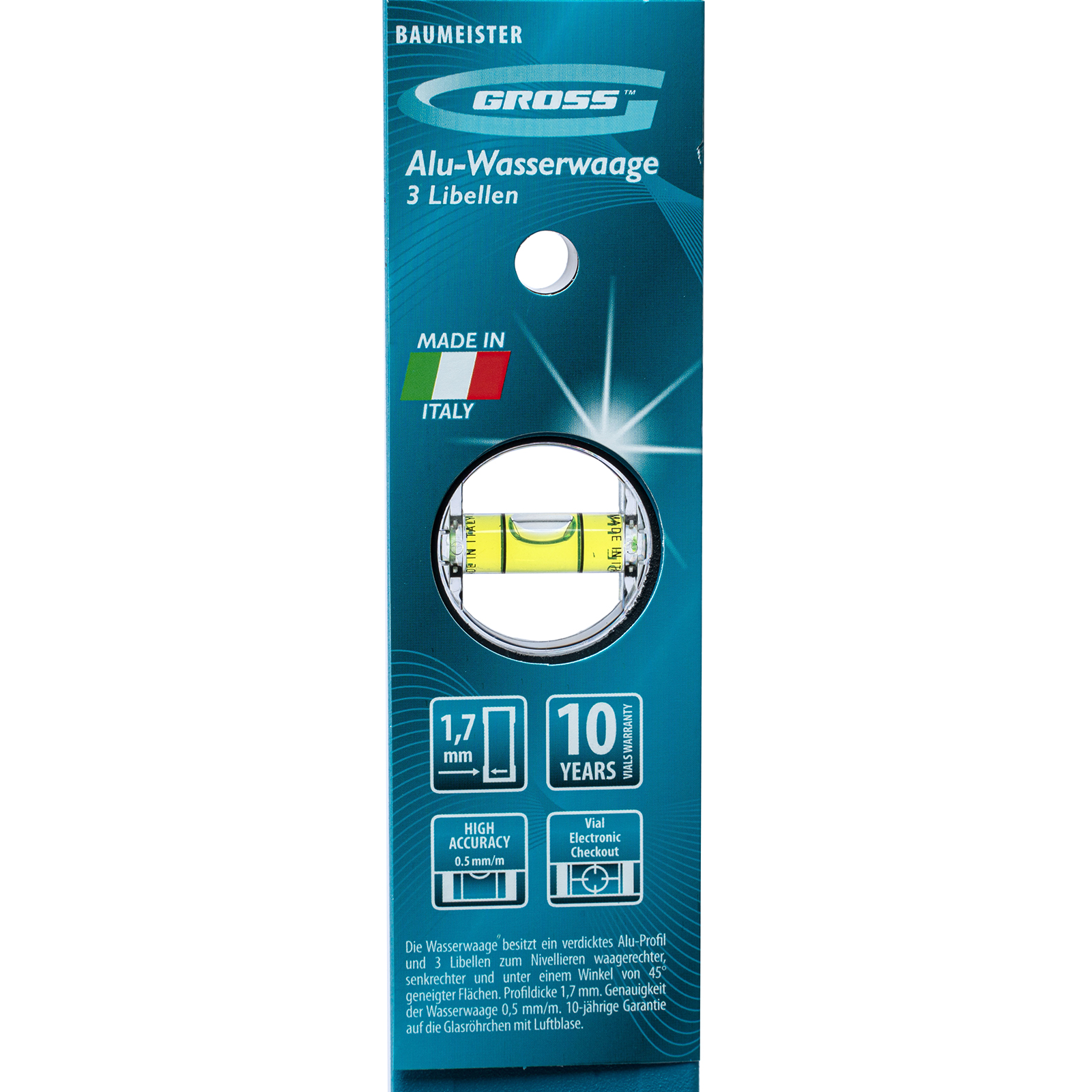 - Качественное исполнение — уровень изготовлен в Италии на высокотехнологичном производстве, погрешность измерений составляет всего 0,5 мм/м.