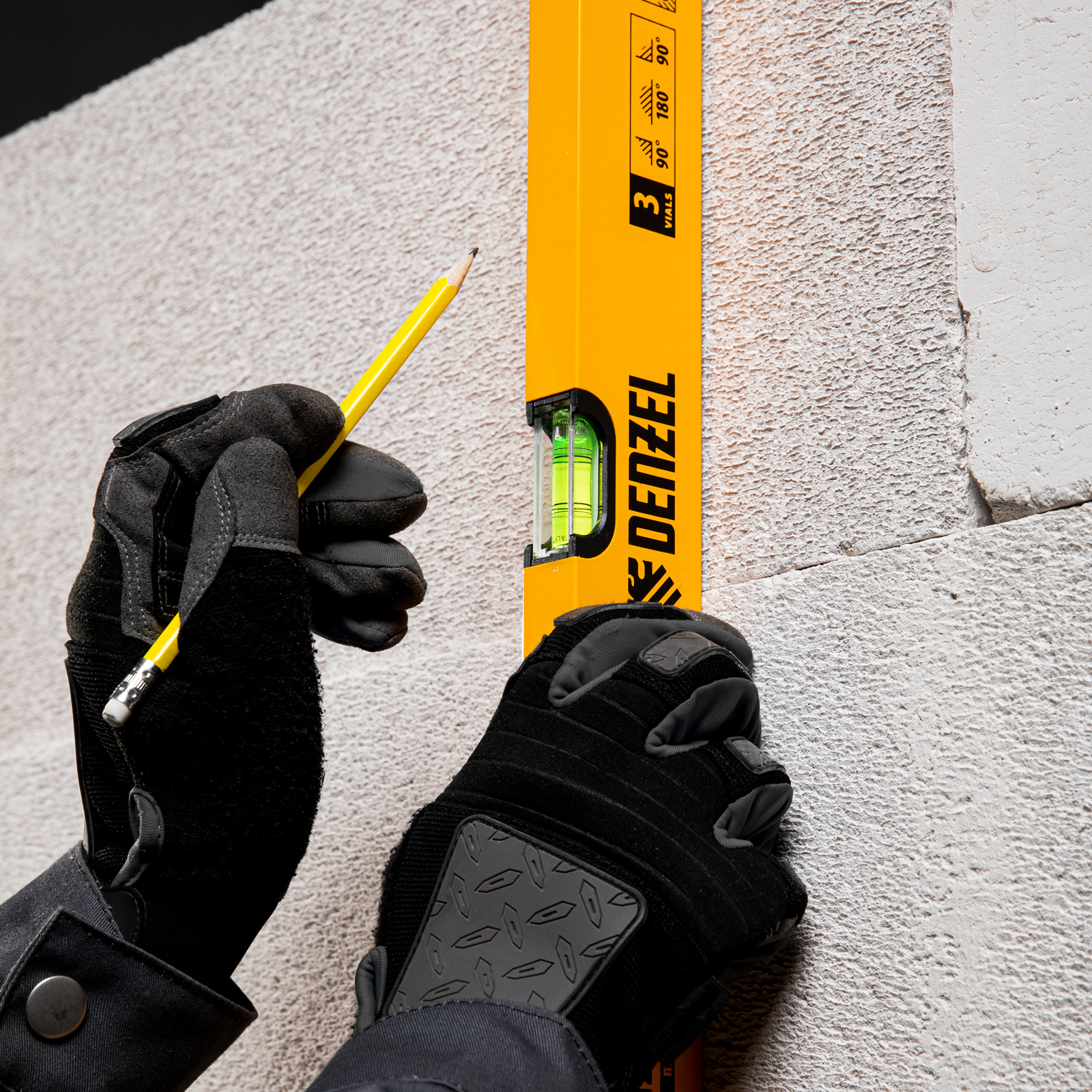 Алюминиевый фрезерованный уровень Denzel 33684 длиной 1200 мм, с 3 глазками, используется для контроля вертикальных и горизонтальных плоскостей. Позволяет получить качественный результат при выполнении строительных и отделочных работ.