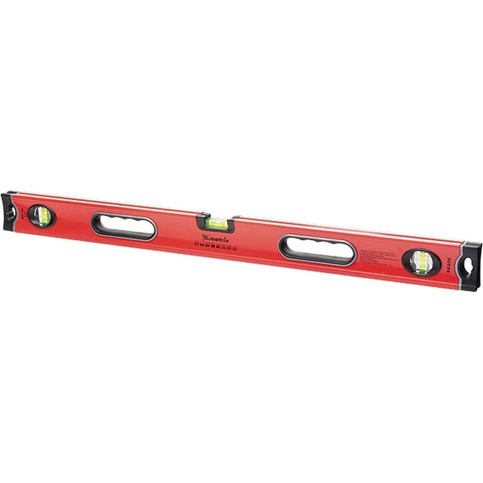 Алюминиевый уровень Matrix 34312 длиной 1500 мм, с 3 глазками, ударопрочными заглушками и двухкомпонентными ручками, повышает точность работы, т. к. позволяет обнаружить отклонения от вертикали, горизонтали и угла 45°. Используется для монтажа конструкций, укладки покрытий, облицовки поверхностей и т. д., подходит для профессионального и бытового применения.
