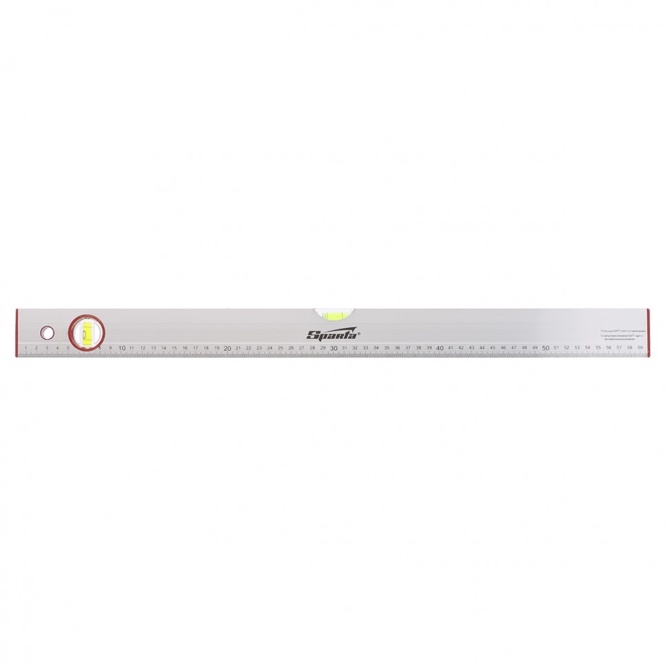 Алюминиевый уровень Sparta 35106 длиной 600 мм, с 2 глазками и линейкой, рассчитан на применение в быту и в производственных условиях. Он поможет добиться точного выстраивания разметочных линий для последующей установки конструкций, полок, укладки облицовочных материалов и т.д. Две пузырьковые ампулы обеспечивают точный контроль отклонений поверхностей от горизонтальной и вертикальной плоскостей.,Для определения отклонения вертикали 90 градусов необходимо использовать пузырьковую ампулу только в верхнем положении уровня. Только базовая поверхность является рабочей (противоположная ампуле 180 градусов).