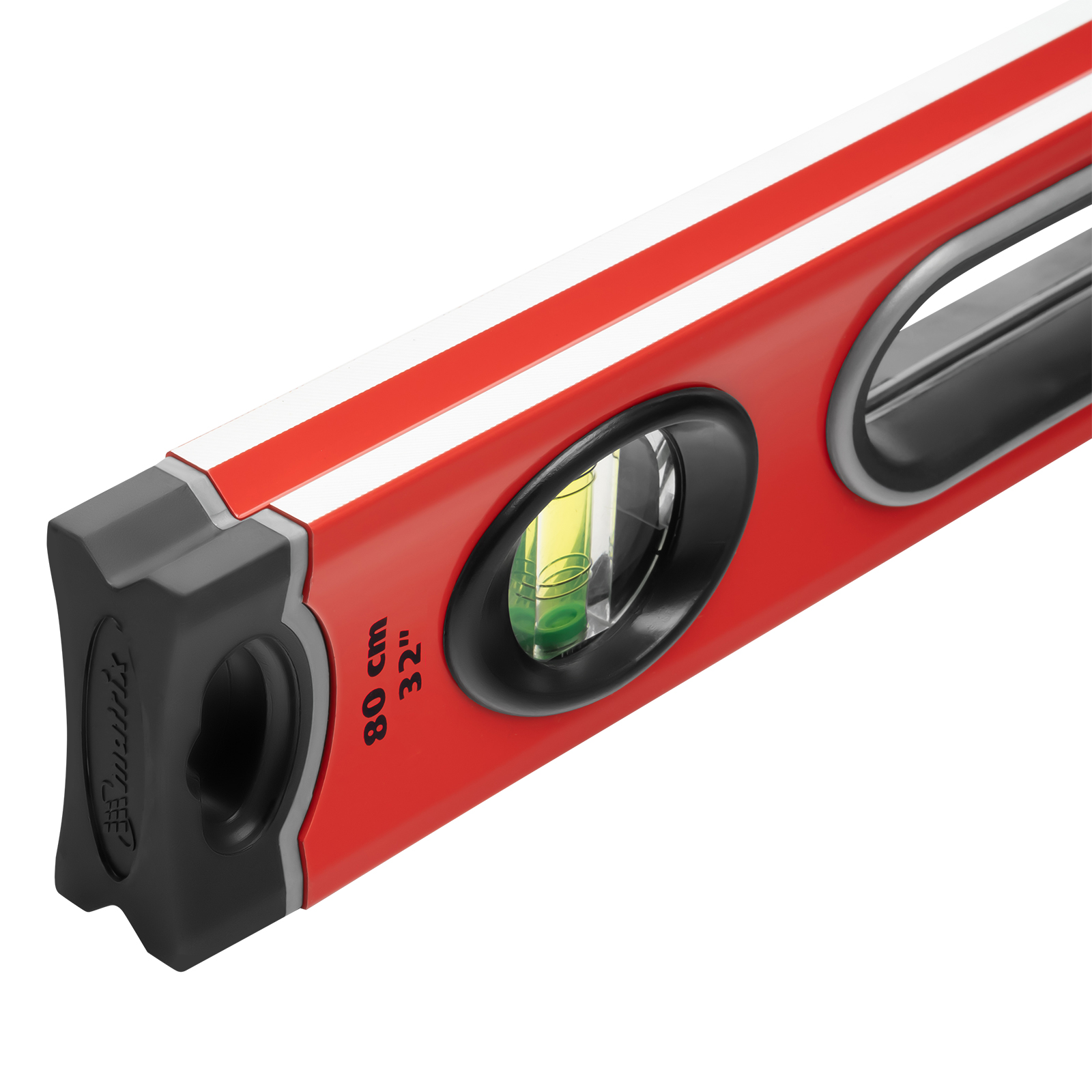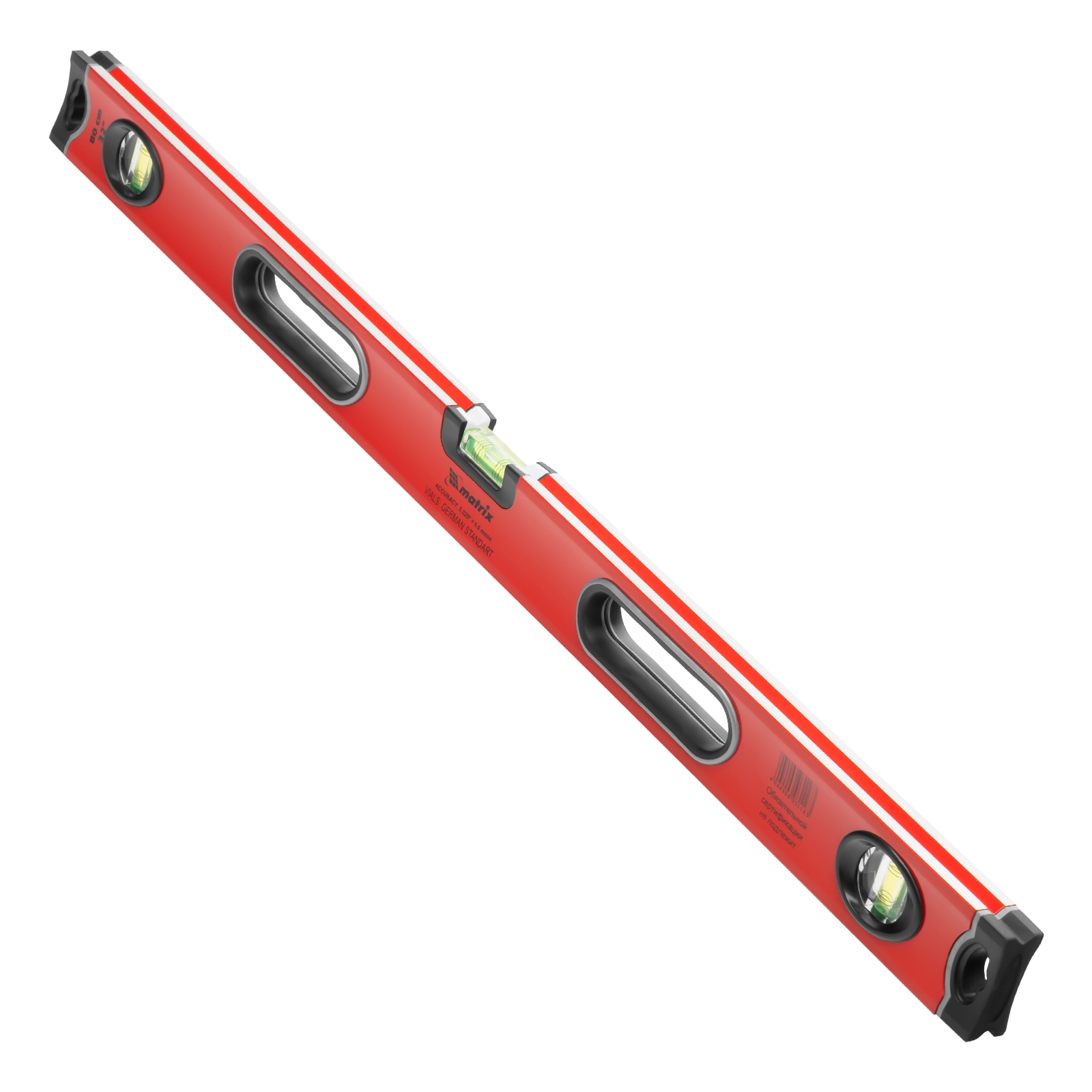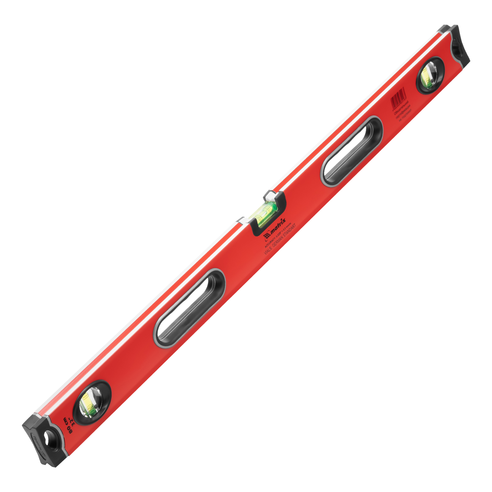 Алюминиевый уровень Matrix 34306 длиной 800 мм, с 3 глазками, ударопрочными заглушками и двухкомпонентными ручками, повышает точность работы, т. к. позволяет обнаружить отклонения от вертикали, горизонтали и угла 45°. Используется для монтажа конструкций, укладки покрытий, облицовки поверхностей и т. д., подходит для профессионального и бытового применения.