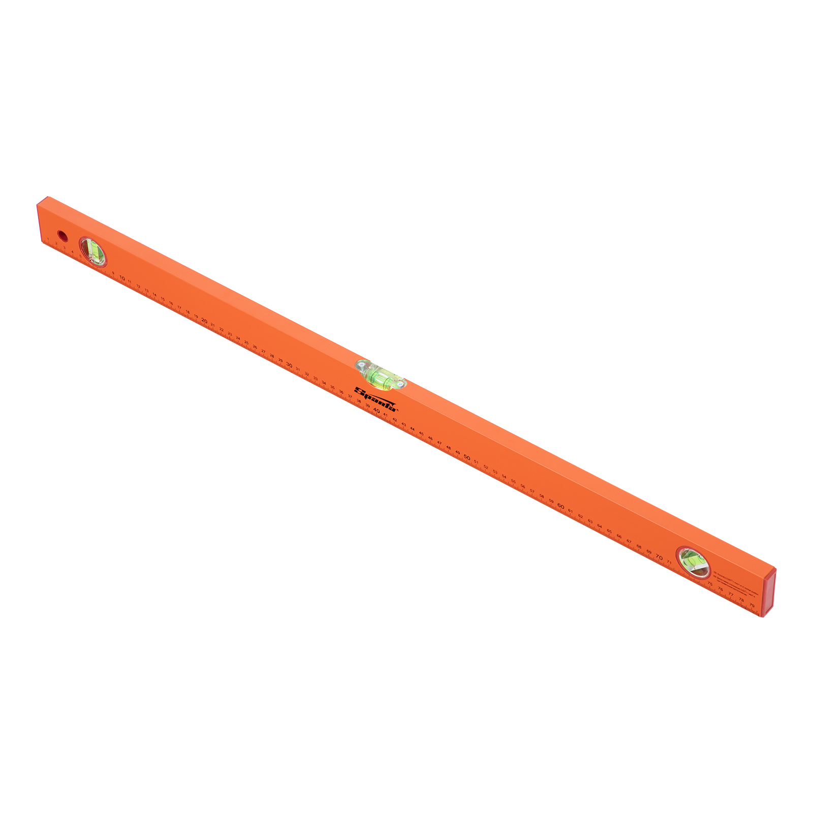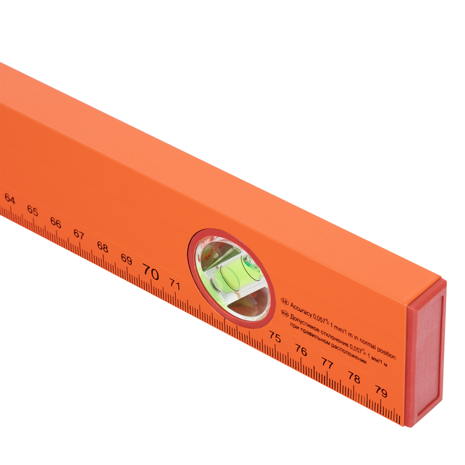 Алюминиевый уровень Sparta 330265 длиной 800 мм, желтого цвета, с 3 глазками и линейкой, будет полезен при проведении строительных, отделочных, облицовочных и других работ, требующих особой точности. Уровень с тремя глазками поможет определить отклонение от горизонтальной и вертикальной плоскости, выставить угол 45°, измерить предметы и т. д.