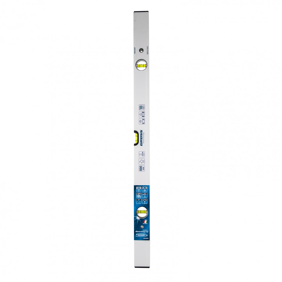 Уровень алюминиевый фрезерованный Gross 33672 длиной 800 мм, магнитный, с 3 глазками, — незаменимый инструмент в быту и на строительной площадке. Позволяет выявить погрешности измерений, отклонения от заданной вертикали и горизонтали.