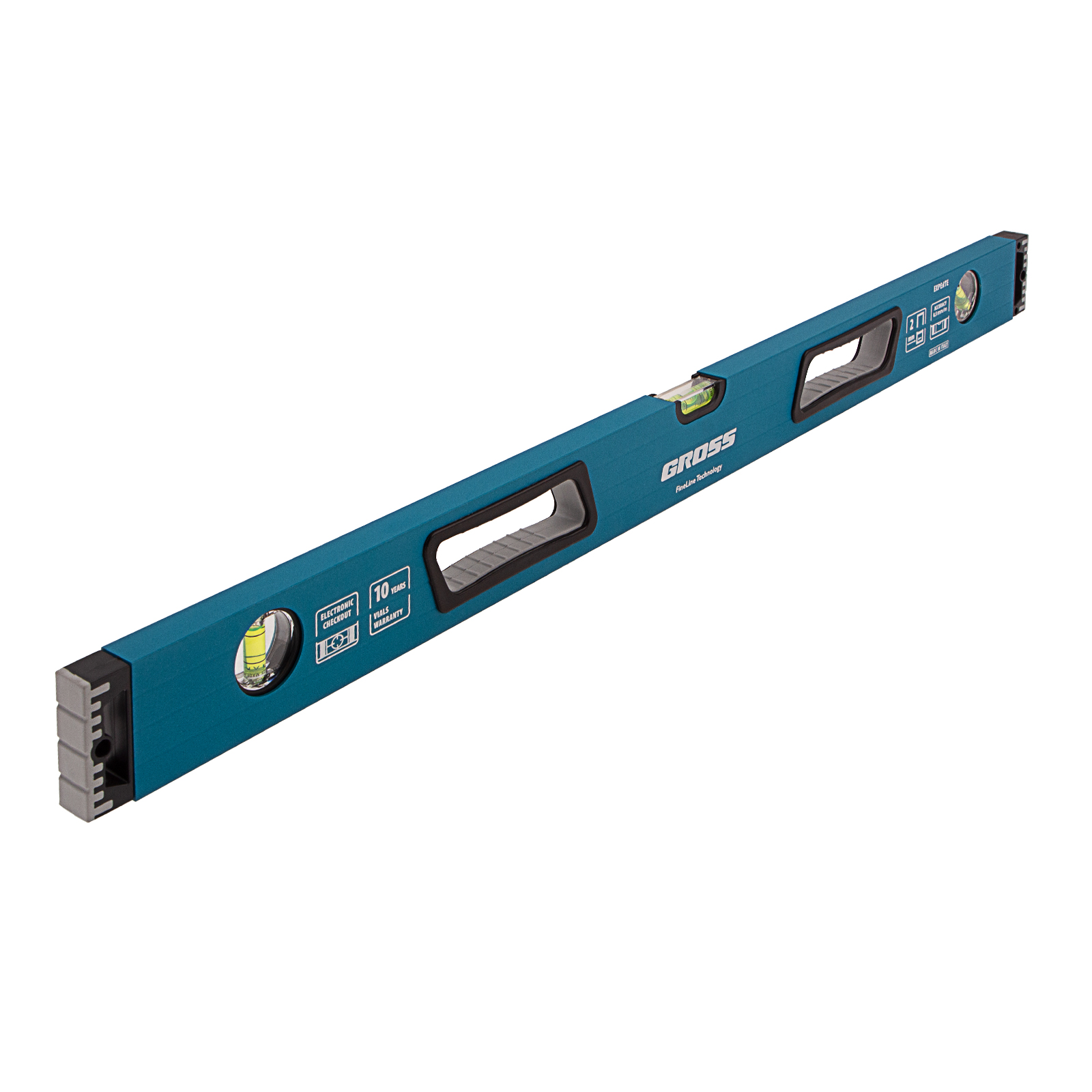 Уровень алюминиевый, 800 мм, усиленный с ударопрочными заглушками, рукоятки, 3 глазка Gross