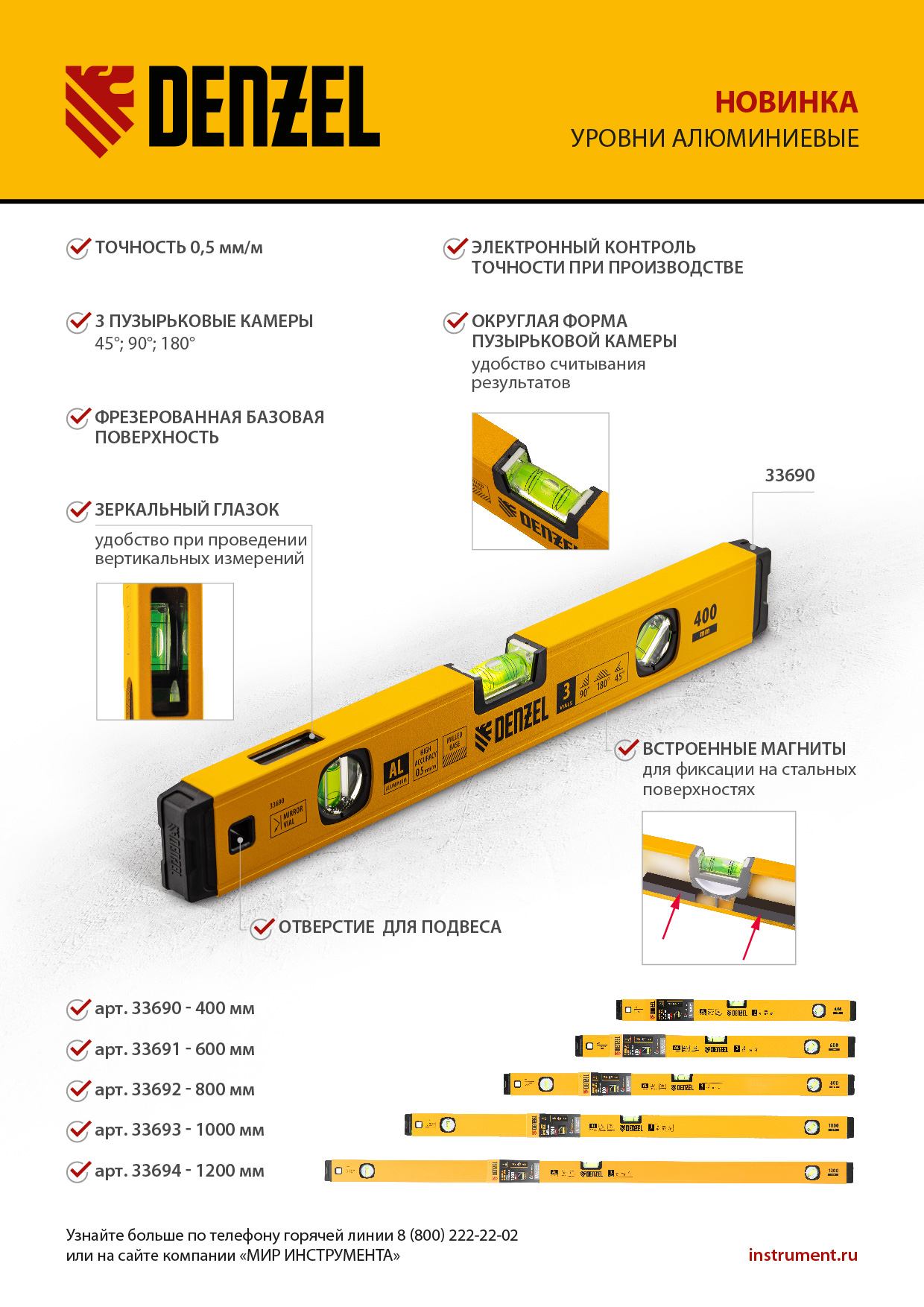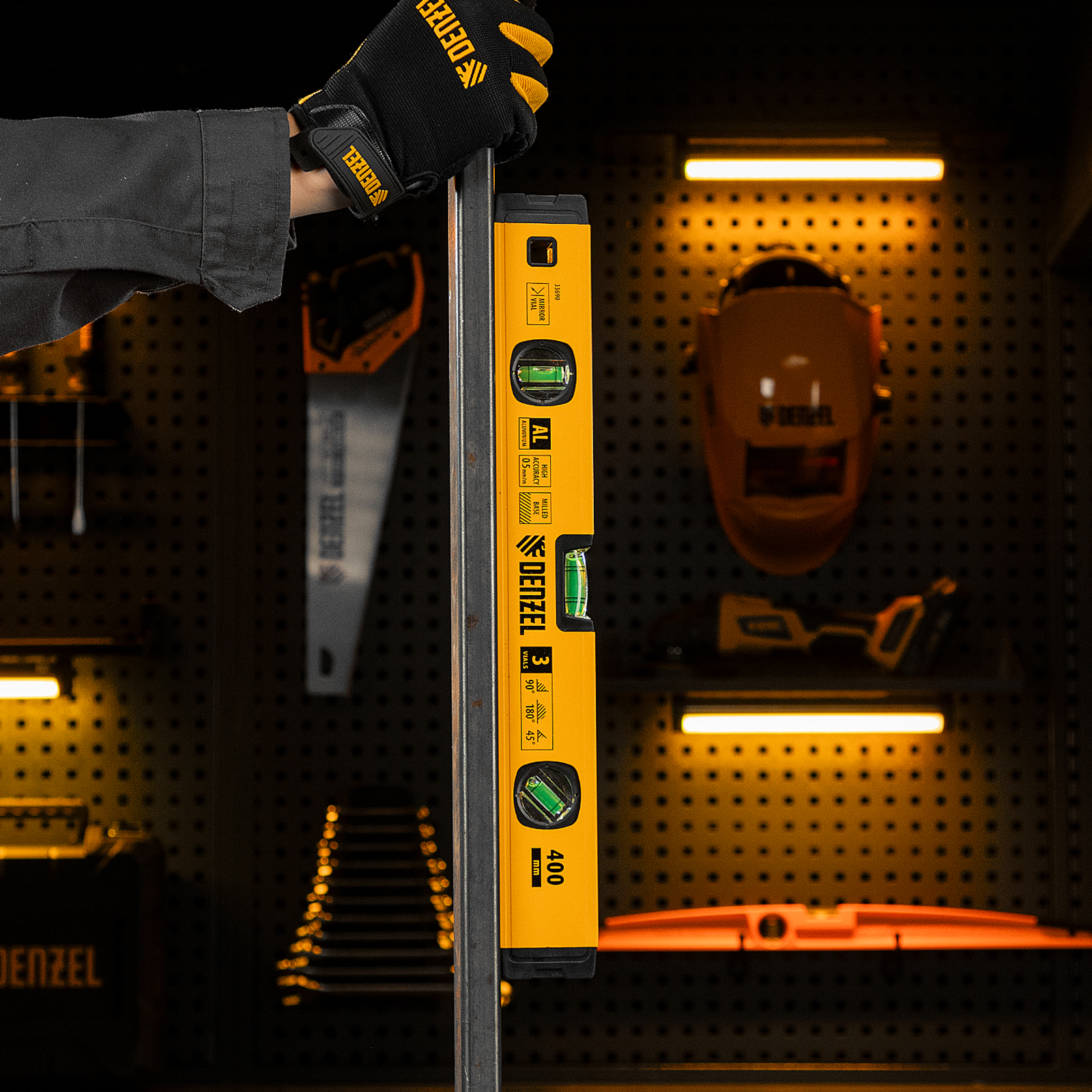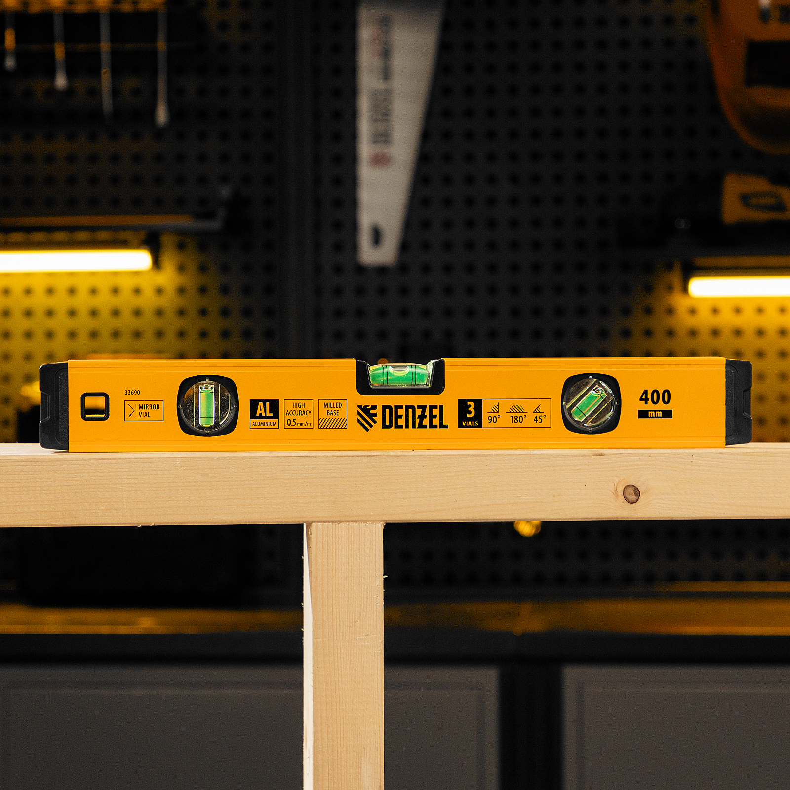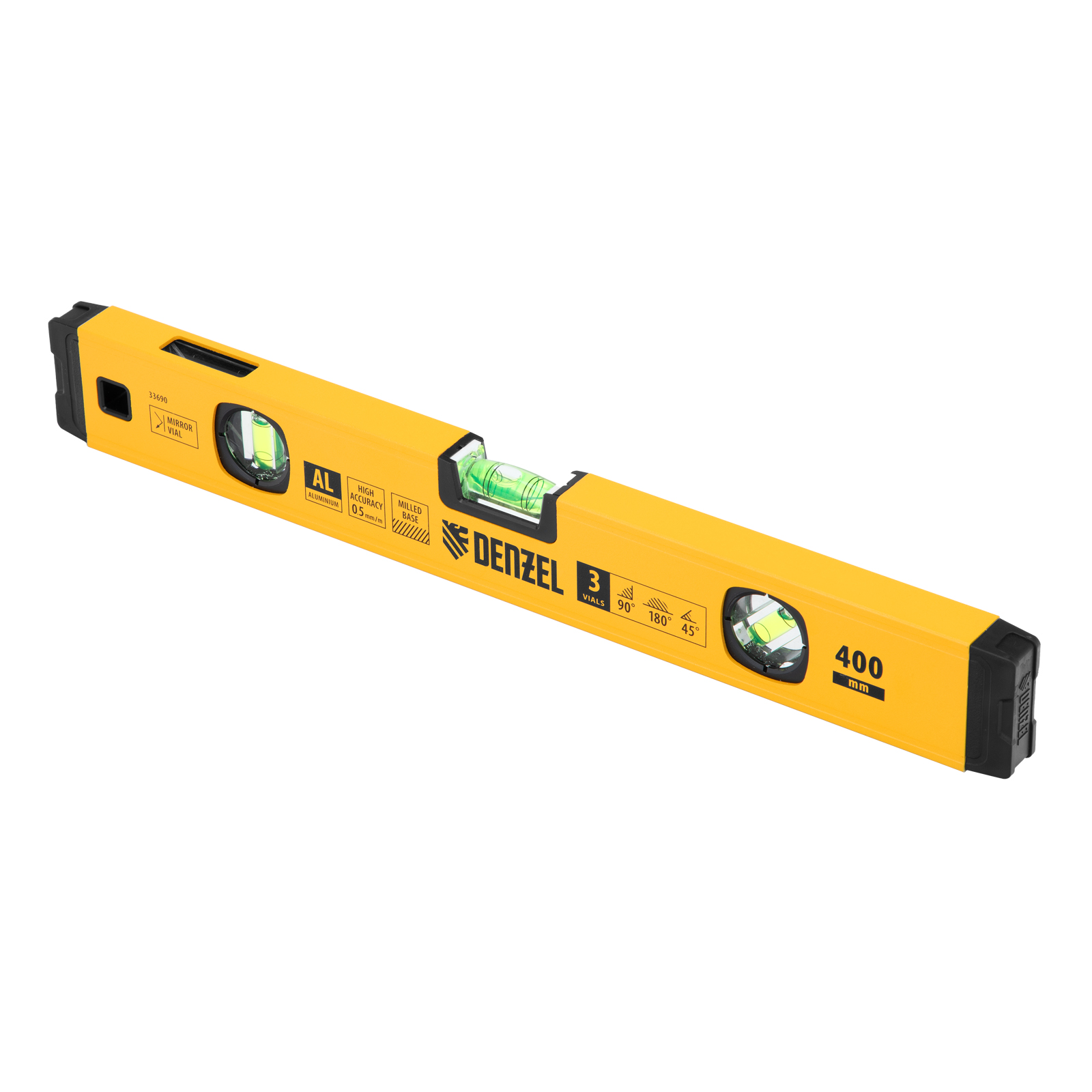 Уровень алюминиевый, магнит., фрезерованный, 3 глазка (1 зеркал.) 0,5 мм/м, 400 мм Denzel в Санкт-Петербурге