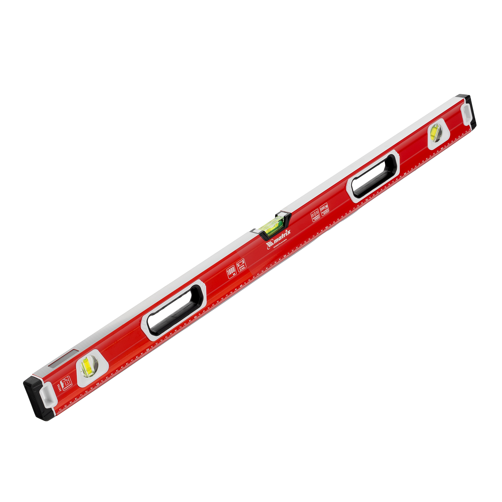 Уровень алюминиевый фрезерованный Matrix 34733 длиной 1000 мм, с магнитной полосой и 2-компонентными рукоятками, 3 глазками и 1 зеркальным отражателем, — измерительный инструмент для контроля отклонений поверхностей от горизонтали, вертикали и угла 45°. Используется для выполнения работ, требующих высокой точности.