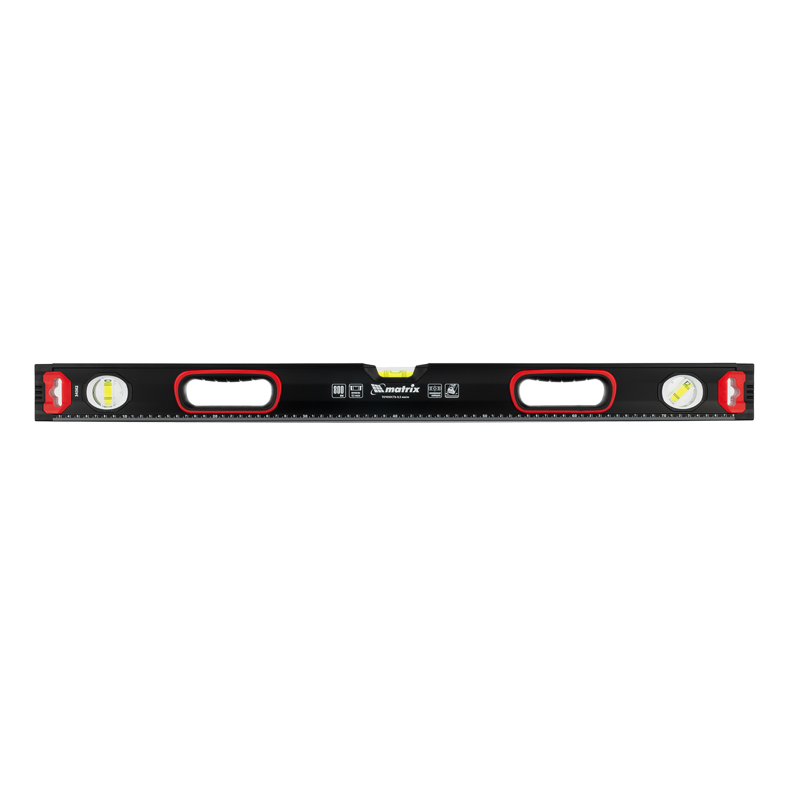 Уровень алюминиевый, усиленный, фрезерованный, 3 глазка, двухкомпонентные рукоятки, 800 мм Matrix