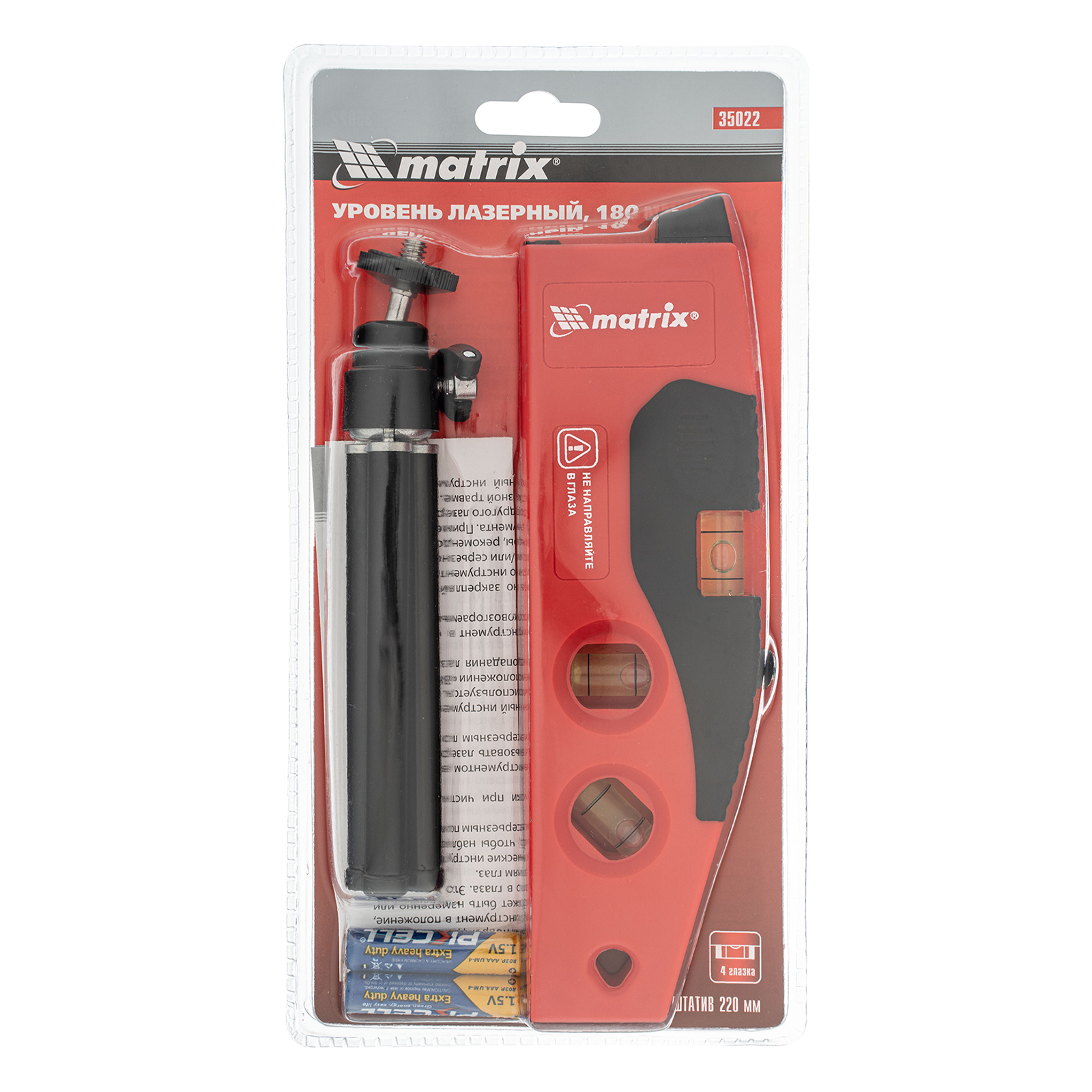 Лазерный уровень, 180 мм, 220 мм штатив, 4 глазка Matrix