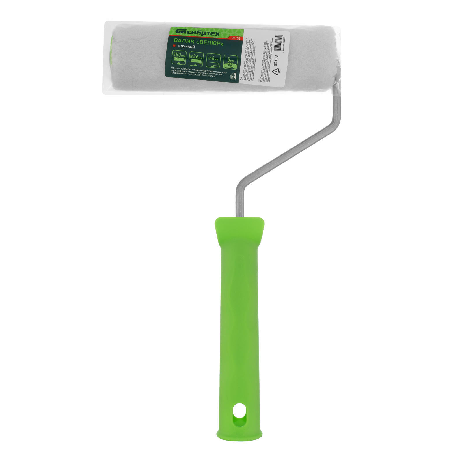 Валик "Велюр" с ручкой, 150 мм, ворс 5 мм, D 36 мм, D ручки 6 мм Сибртех