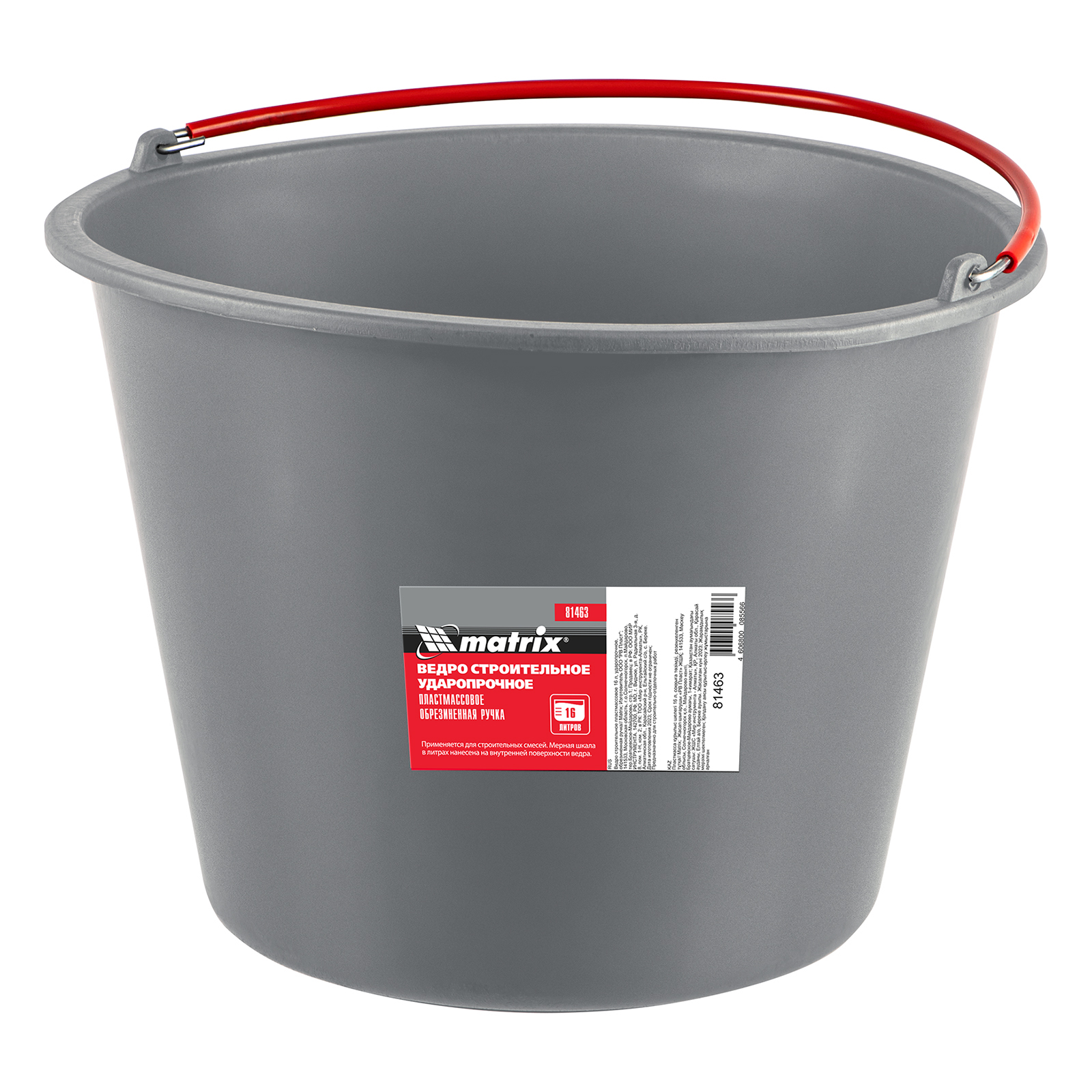 Ведро строительное пластмассовое 16 л, ударопрочное, обрезиненная ручка Matrix