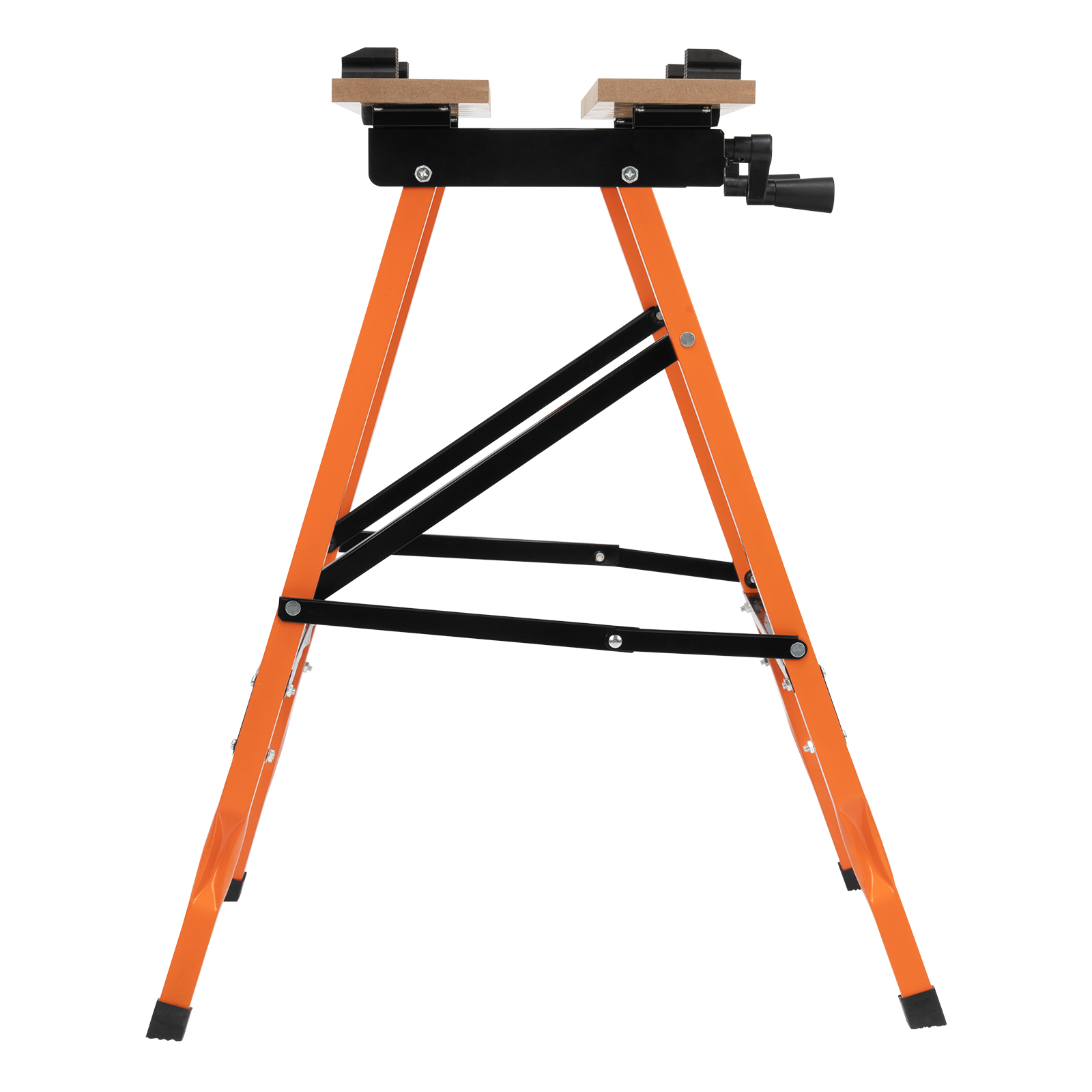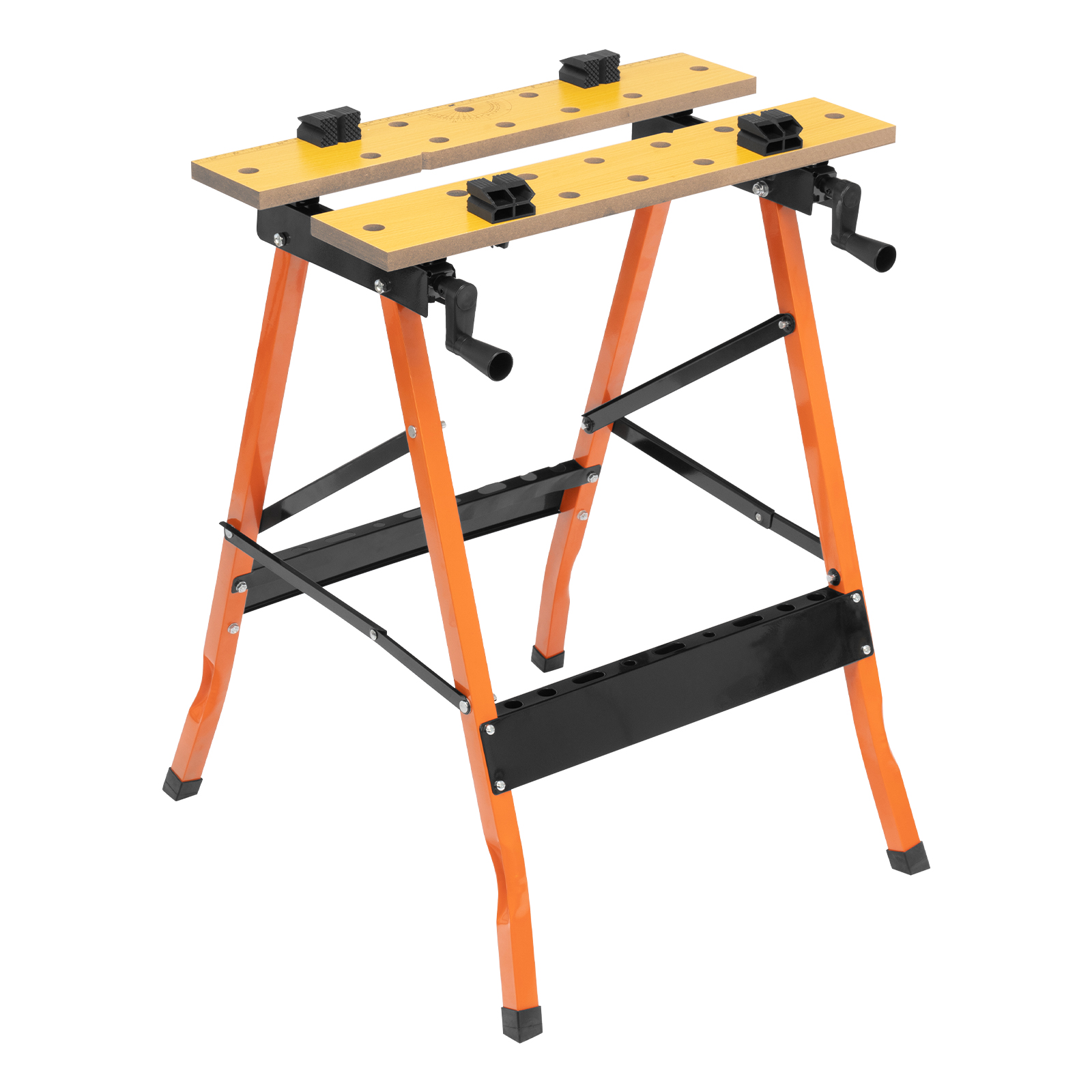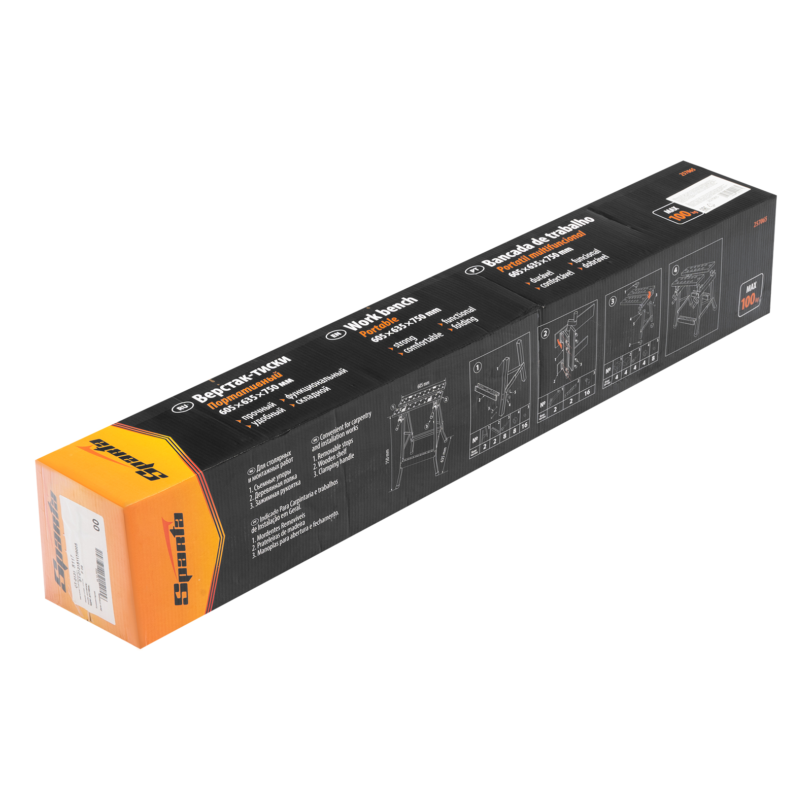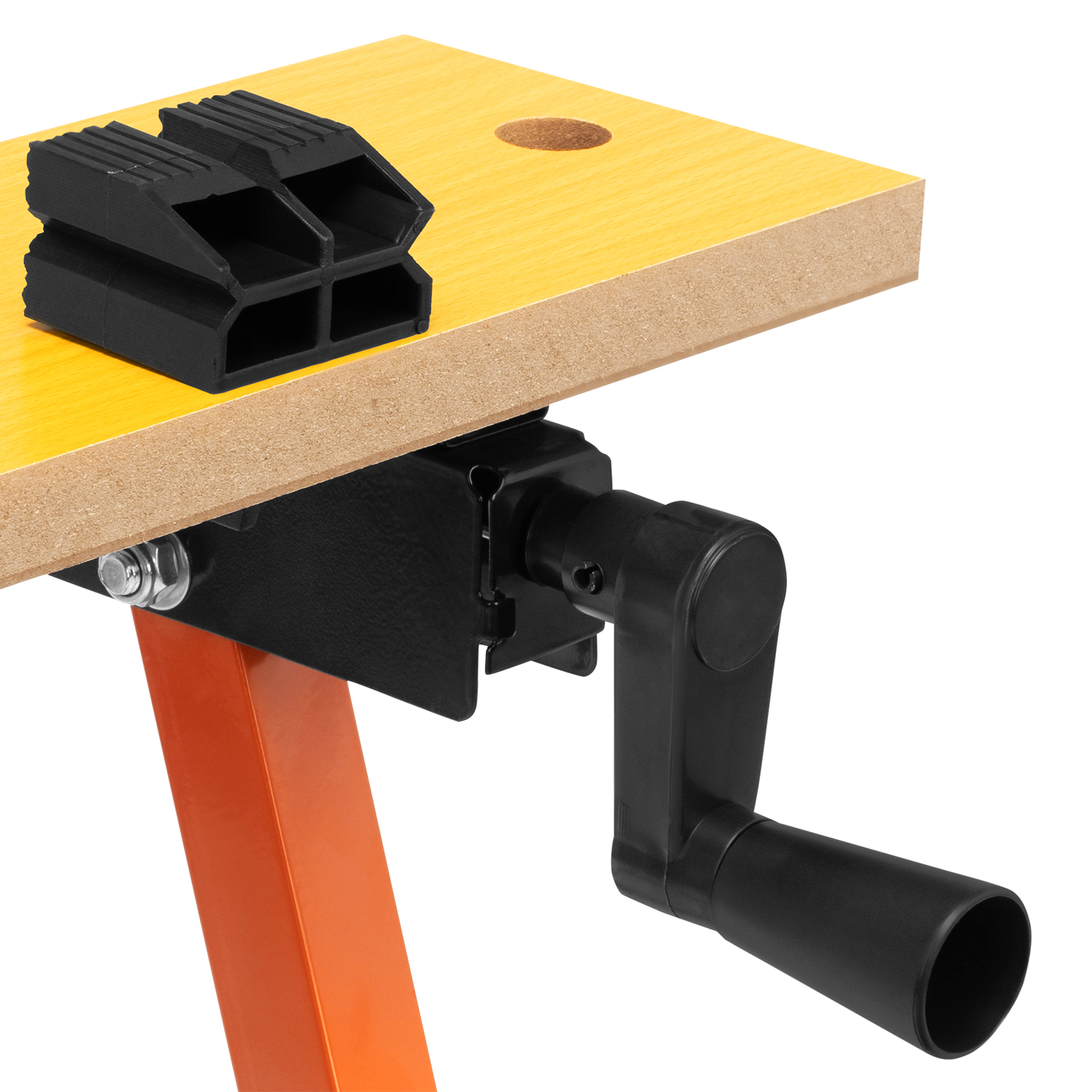 • Удобная эксплуатация — верстак снабжен 4 съемными упорами, которые устанавливаются в различных позициях, а на столешнице имеется разметка с линейкой и транспортиром.
