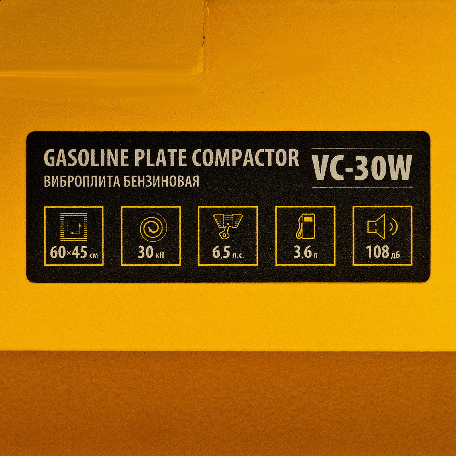 Виброплита бензиновая VC-30W, 30 кН, 60*45 см, 196 см3, бак для воды Denzel