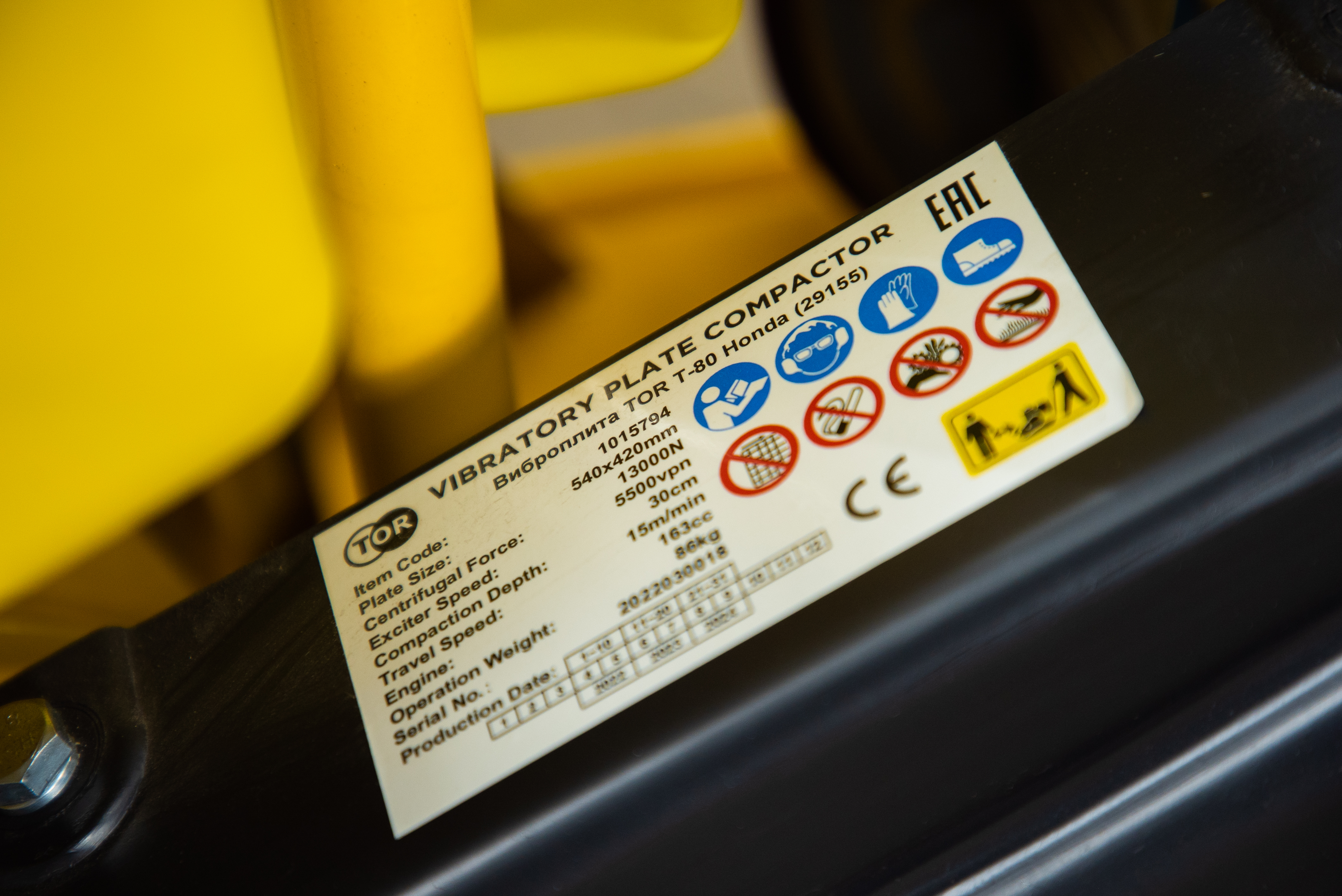 Виброплита 85 кг, 13кН (Honda) бак, коврик, колесный комплект TOR T-80 в Санкт-Петербурге