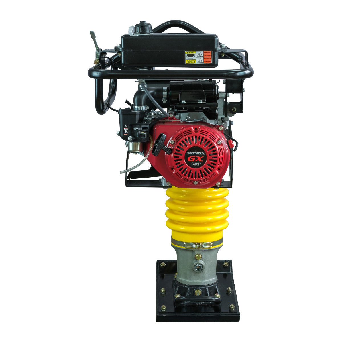 Преимущества Двигатель Honda GX160 мощностью 5,5 л.с. разработан для вибрационного оборудования. Регулировка оборотов осуществляется плавно благодаря наличию специального рычага управления дросселем. Эффективный глушитель и воздушный фильтр обеспечивают высокую производительность. Компактная конструкция упрощает эксплуатацию и ремонт. Специальная система креплений уменьшает вибрации, передаваемые оператору. Топливный бак из устойчивого к коррозии пластика продлевает срок службы. Стальной трамбовочный башмак и защитный каркас повышают надежность. Оптимальное уплотнение и низкий уровень шума делают работу комфортной. |