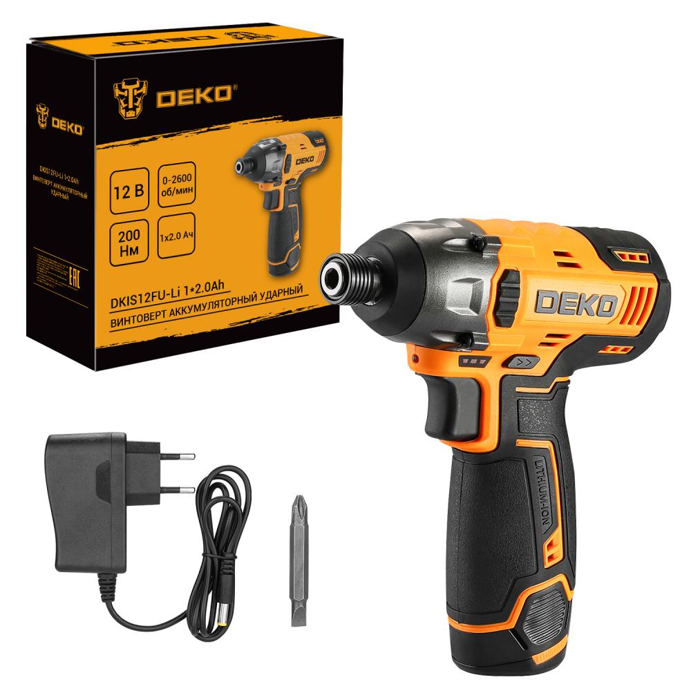 Винтоверт аккумуляторный ударный DEKO DKIS12FU-Li, 12В, 1х2.0Ач