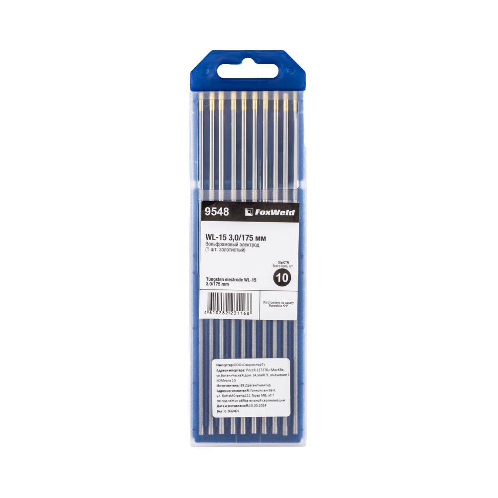 Вольфрамовый электрод WL-15 3,0мм / 175мм (1шт. золотистый) FoxWeld в Санкт-Петербурге