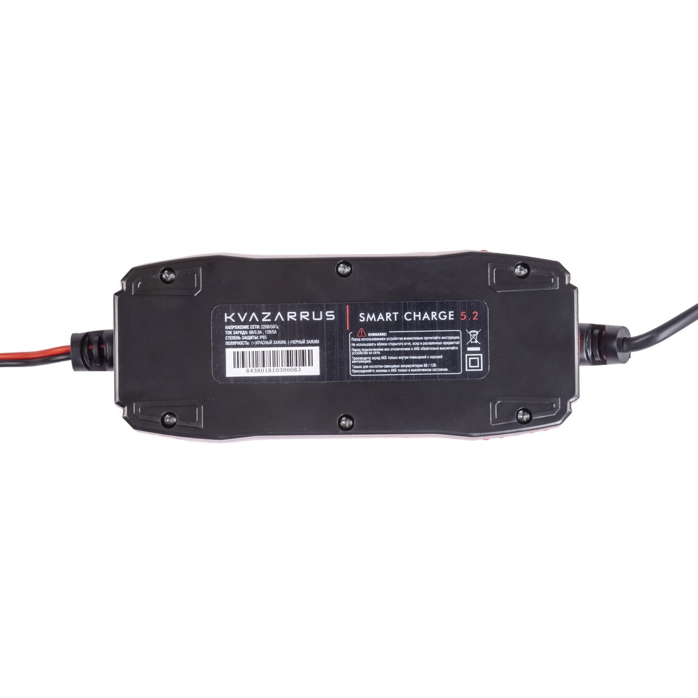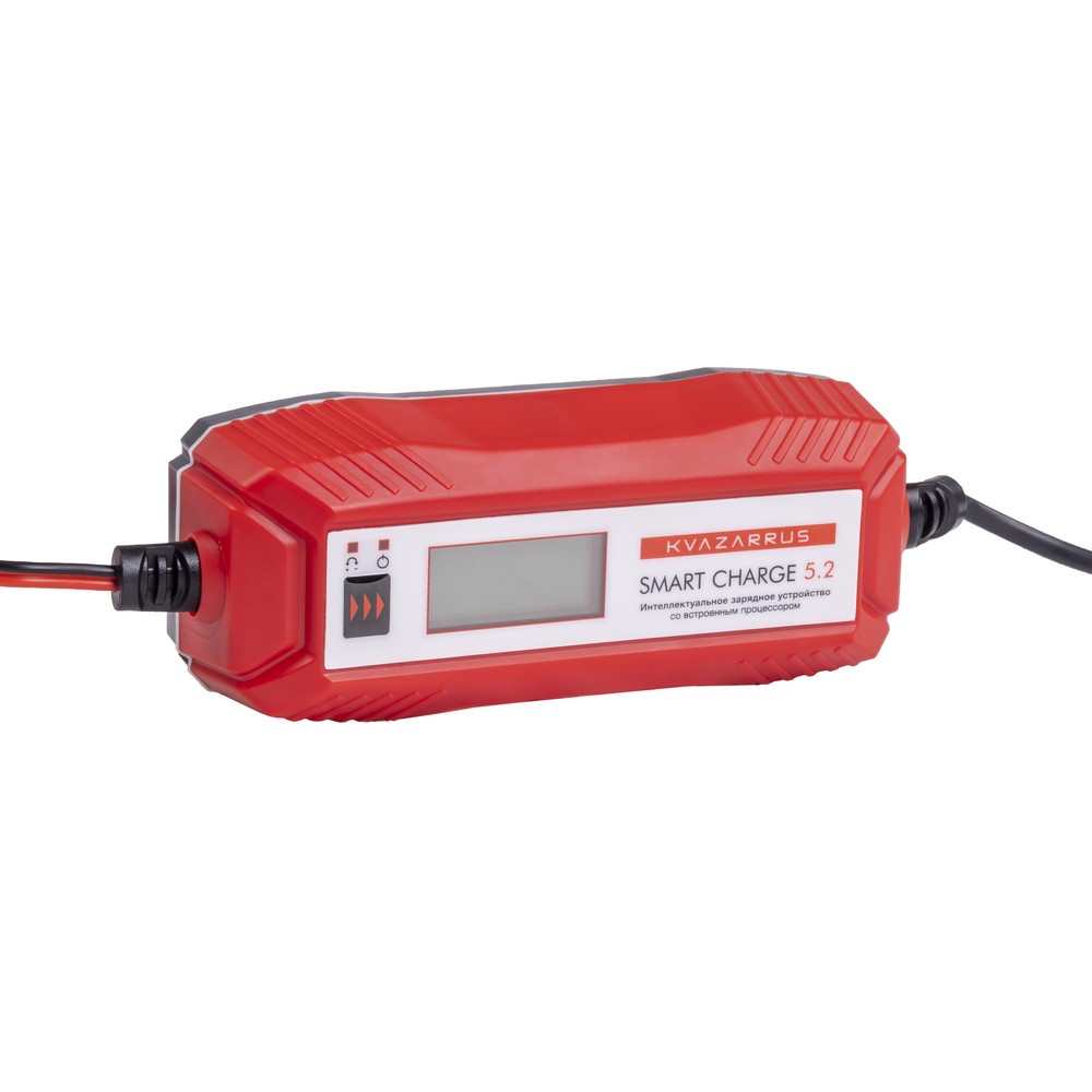Интеллектуальное импульсное зарядное устройство с микропроцессорным управлением KVAZARRUS Smart Charge 5.2 обеспечивает высокую эффективность зарядки всех типов свинцово-кислотных батарей с напряжением 6, 12 В. Устройство работает в автоматическом режиме с возможностью выбора программы зарядки. Процесс заряда 7-ступенчатым методом состоит из этапов восстановления (десульфатации) батареи, основного заряда на максимальном токе, поддерживающего заряда. Устройство подключается к стандартной розетке 230 вольт. Корпус надежно защищает электронику от попадания пыли и влаги и имеет степень защиты IP65.ДЕСУЛЬФАТАЦИЯ: При десульфатации микропроцессорное управление автоматически определяет состояние АКБ, после этого устройство проводит восстановление, очищение, лечение аккумуляторной батареи в случае необходимости.НЕБОЛЬШОЙ ВЕС: Портативное зарядное устройство отличается компактными габаритами и небольшим весом меньше 1 кг, что позволяет его удобно хранить и, при необходимости, всегда иметь при себе.ПРЕИМУЩЕСТВА:Автоматическое определение типа и напряжения АКБ7 этапов зарядкиРежим десульфатации АКБLСD-дисплей с подсветкойВстроенный амперметрРабота в полностью автоматическом режимеКонтроль зарядки встроенным микропроцессоромВозможность выбора программы зарядкиКомплексная защита устройства и заряжаемых АКБЗащита от перезарядаЗащита от перегреваЗащита от несоблюдения полярностиЗащита от короткого замыканияЗащита от перегрузкиПортативность – компактные размеры и лёгкий весВысокая степень защиты IP65ФУНКЦИОНАЛЬНЫЕ ОСОБЕННОСТИ:МНОГОСТУПЕНЧАТАЯ ЗАРЯДКА АККУМУЛЯТОРА: Этапы заряда АКБ 12 В:1.Проверка подключения и диагностика;2.Десульфация;3.Заряд на максимальном токе;4.Заряд до 80%;5.Восстановительный заряд до 100%;6.Мониторинг АКБ;7.Поддерживающий заряд.КОМПЛЕКТАЦИЯ: Зарядное устройство в сборе с токопроводами – 1 шт.; Инструкция по эксплуатации + Гарантийный талон – 1 компл.