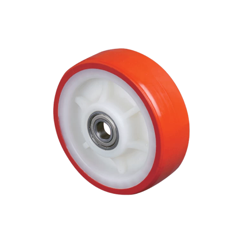 Данное большегрузное колесо подходит для установки на платформенные тележки, передвижное большегрузное оборудование. Материал изготовления обода — нейлон. Прочная полиуретановая шинка устойчива к истиранию. Рабочий температурный диапазон — от -20 до +70 °С, максимальная грузоподъемность — 180 кг.